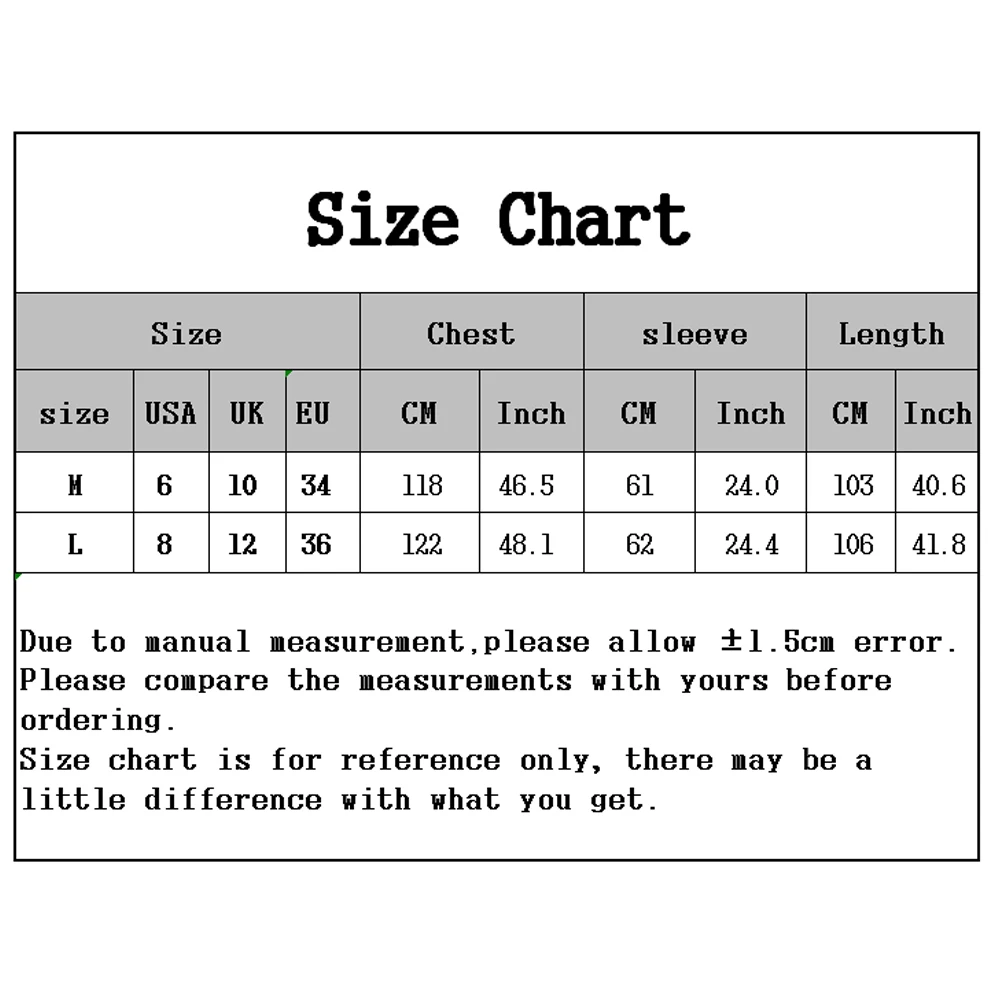 [Наш Размер L] Грудь: 122 см/48,1 ", рукав: 62 см/24,4", Длина: 106 см/41,8 "(прибл.)