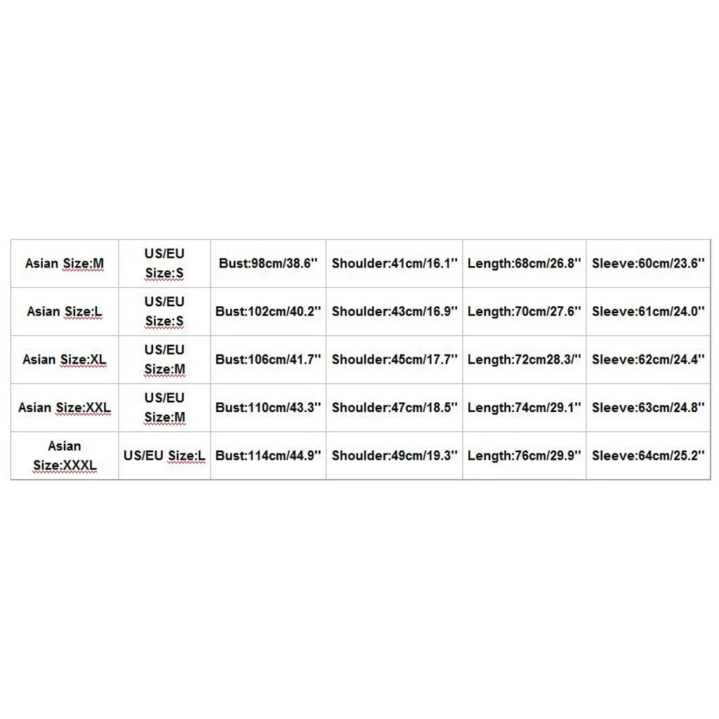 Азиатский Размеры US/EU Размеры Обхват груди Сумка на плечо Длина Рукава М S 98 см/38,6'' 41 см/16,1'' 68 см/26,8'' 60 см/23,6'' L S 102 см/40,2'' 43 см для ухода за ребенком для мам/16,9'' 70 см/27,6'' 61 см/24,0'' XL М 106 см/41,7'' 45 см/17,7'' 72cm28. 3/'' 62 см/24,4'' XXL М 110 см/43,3'' 47 см/18,5'' 74 см/29,1'' 63 см/24,8'' XХХL L 114 см/44,9'' 49 см/19,3'' 76 см/29,9'' Высота голенища 64 см; 25,2''