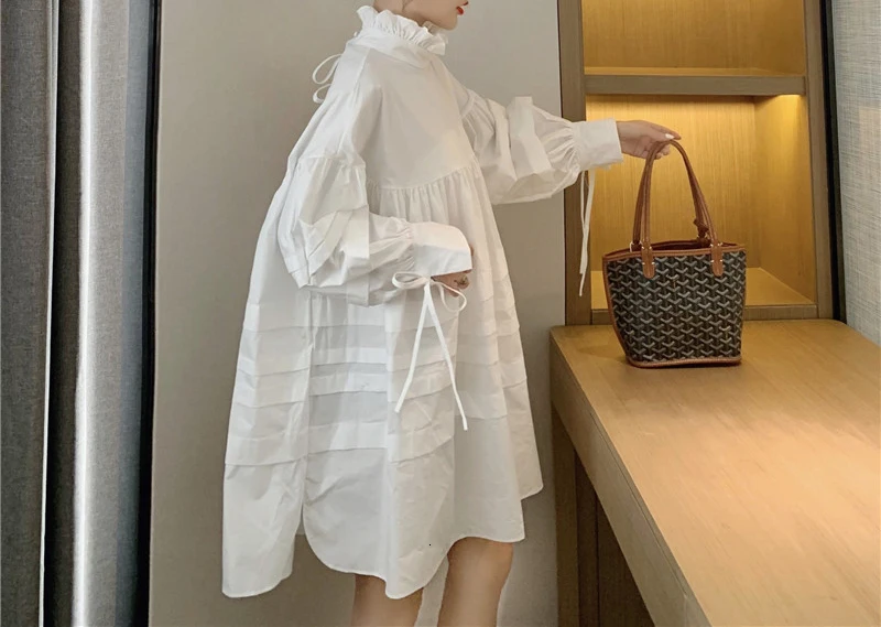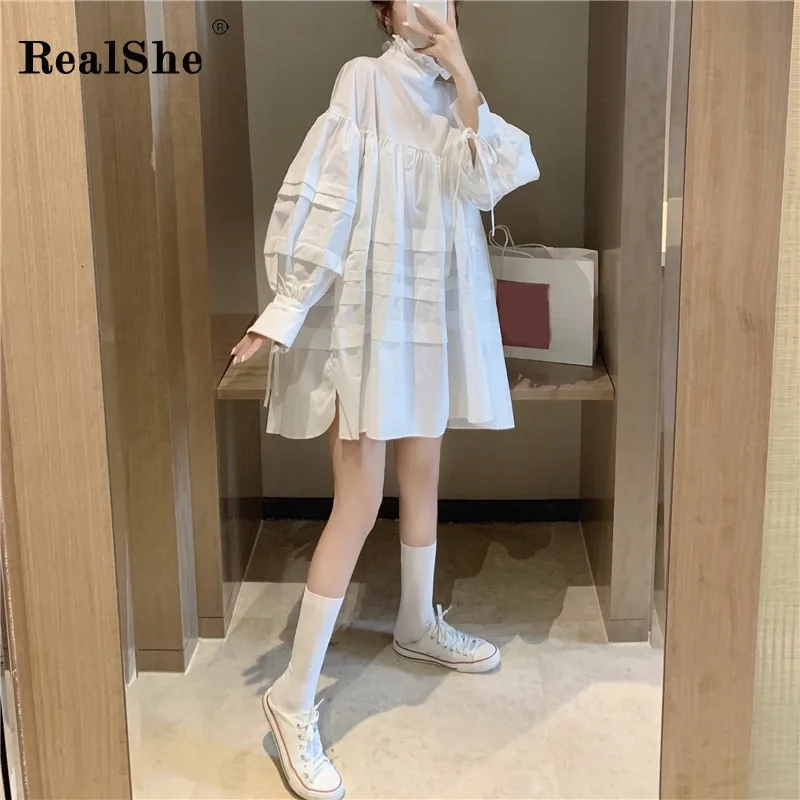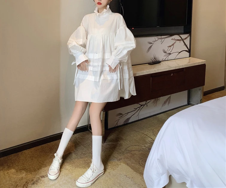 Название:RealShe, женское платье, 2019, водолазка, длинный рукав, фонарь, оборки, свободное, а-силуэт, мини платье, весна, осень, повседневное, короткое, для девушек, платья