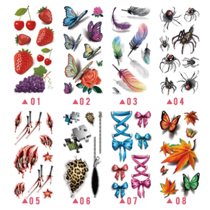 Временные татуировки для боди-арта, набор, 3D Поддельные татуировки, для взрослых и детей, бабочка, цветок, водостойкие наклейки ZG88