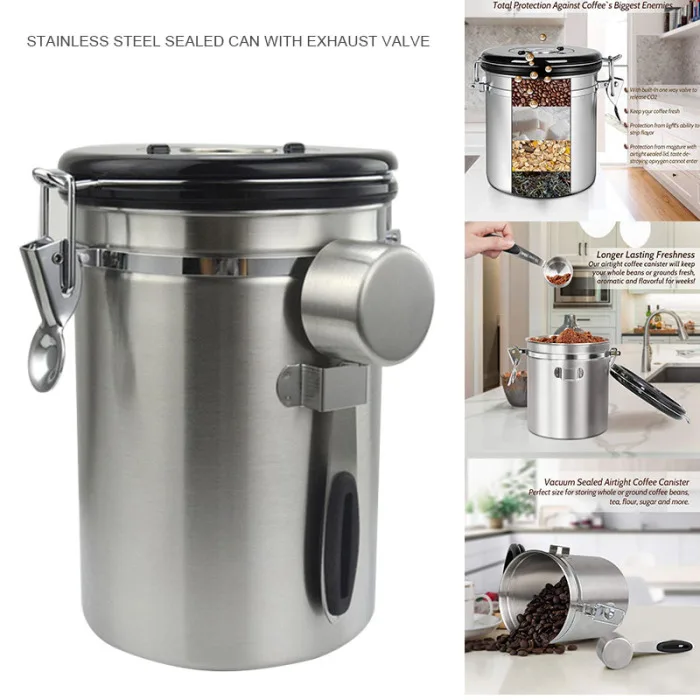 Новая герметичная кофейная канистра из нержавеющей стали контейнер для кофе с заземлением банка с клапаном для кухни D6