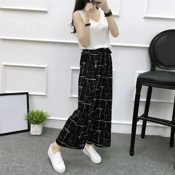 Новые женские широкие брюки с высокой талией повседневные летние тонкие брюки свободная юбка-брюки IR-ing