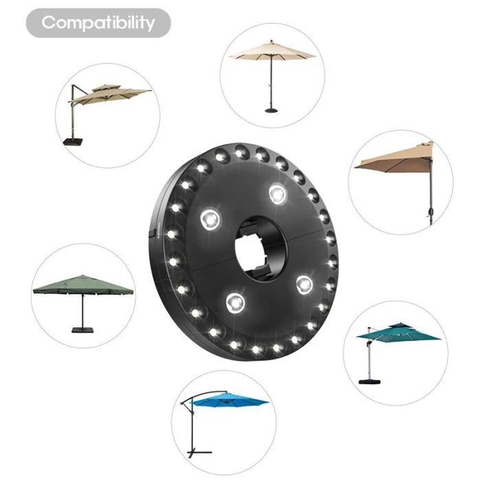 Легко наносится: никаких дополнительных инструментов не требуется, легко прижимается к зонту с помощью встроенного автоматического регулируемого сильного зажима, также можно повесить в любом месте с помощью двух крючков.