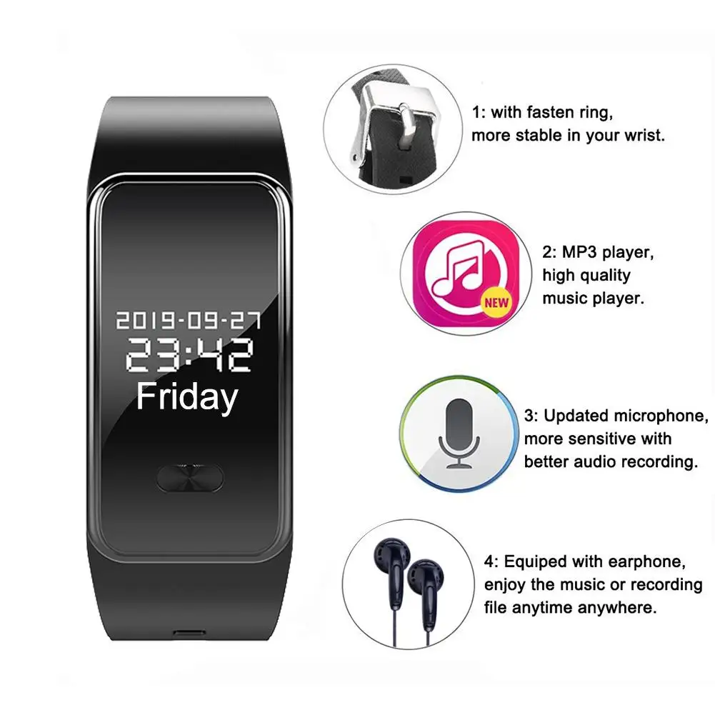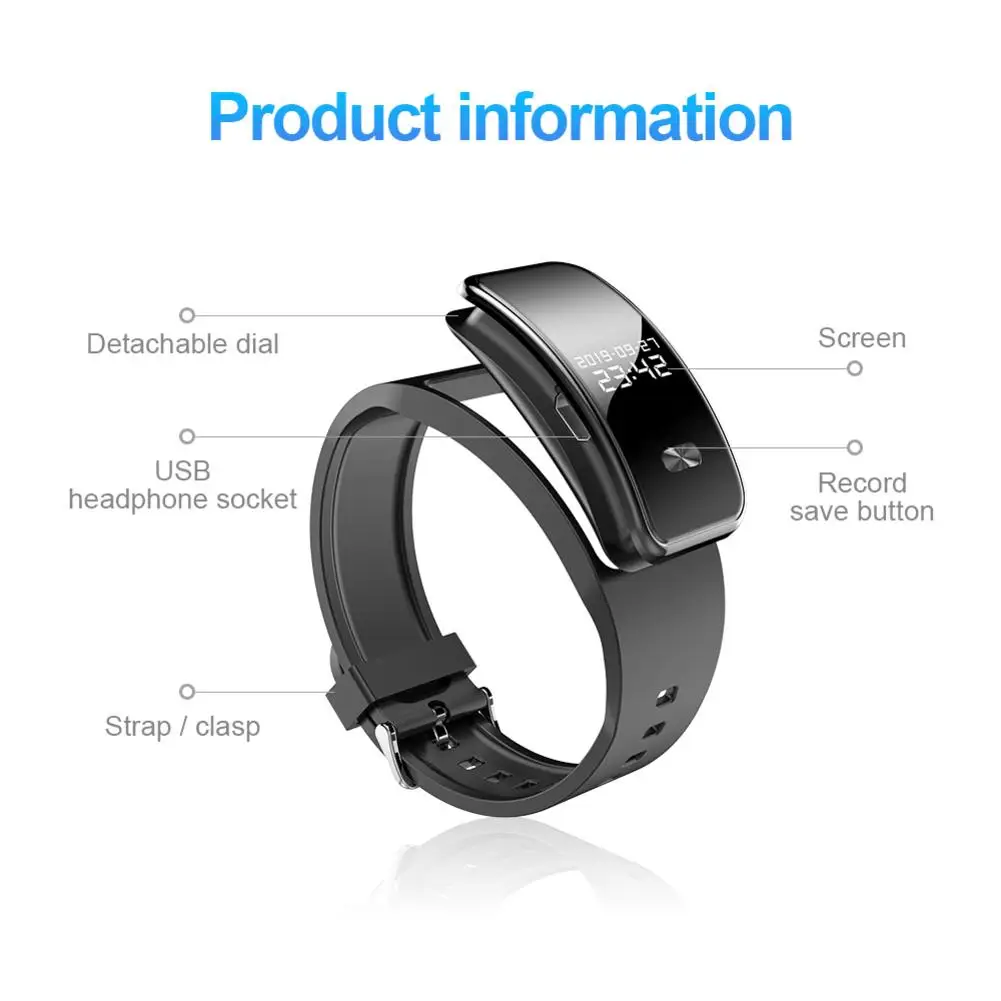 1. Модный дизайн: с высококачественным удобным и модным ремешком на запястье, переносной Диктофон Часы выглядят просто, компактно и элегантно. Эти маленькие часы могут расширить вашу память и изменить вашу жизнь.