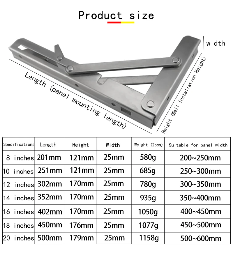 Особенности: Утолщенный дизайн, изготовленный из высококачественных материалов, делает его твердым и прочным. Прочная треугольная конструкция для надежной стабильной поддержки. Широкое использование, может быть установлен на стене и сэкономить больше места для вас на вашей кухне, магазине, магазинах, мастерских, лодках, дома на колесах, на заднем дворе, прицепе, комнате, кухне, балконе, ванная комната и т. Д. Легко установить, вы можете закончить его в течение нескольких минут. Достаточно использовать в качестве книжной полки, кухонной полки, выставочного стенда, садовой полки, внешних настенных кронштейнов и т. д. Характеристики: 8-20 дюймов Материалы: 201 нержавеющая сталь Размер: 8 дюймов/10 дюймов/12 дюймов/14 дюймов/16 дюймов/18 дюймов/20 дюймов Толщина: 2,8 мм Нагрузки Вес: 100 кг