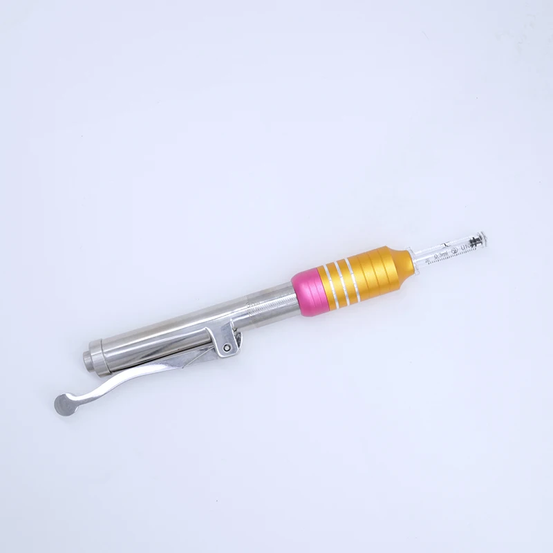 Что такое ручка гиалурона? Водная мезотерапия заключается в впрыскивании гиалуроновой кислоты в кожу. Гиалуроновая кислота содержит влагу, в 200-300 раз более богатая, чем тело. Благодаря чему кожа становится гладкой, мягкой, яркой и увлажненной после инъекций. Для того, чтобы сохранить кожу увлажненной, дамы всегда выбирают различные продукты по уходу за кожей. На самом деле, продукты по уходу за кожей только увлажняют влагу на cutin. Так что при размазывании эти продукты не могут глубоко обеспечить влагу для кожи. Как мы знаем, акне, морщинки и неэластичность появятся, если кожа не будет влагой. Водная мезотерапия решает все проблемы из-за отсутствия влаги, таких как шеллоидная кожа, цветовое пятно, морщинки... И он обеспечит влагу для дермы. Поэтому водная мезотерапия хорошо работает на отбеливании, увлажнении и обновлении неэластичности. Характеристики: Название продукта: ручка для инъекций гиалурона Материал: нержавеющая сталь 304 Особенности: морщинки, подтяжки лица, подтяжки кожи и т. Д. Особенности: -Помогает уменьшить пятна, морщины и следы. Функция подтягивания и наполнения -Увеличение уровня коллагена для создания новой и молодой кожи, что обеспечивает омоложение кожи. -Улучшает кожу, восстанавливает эластичность кожи, улучшает старение. -Может сделать Антивозрастные продукты попадают в глубину кожи, не повреждая кожу, без побочного эффекта, безопасно для использования. -Глубокое Пополнение и богатое питание, укрепляет кожу, чтобы впитать продукт красоты. -Он используется для более чем 10000 инъекций, и Он управляется самоприводной пружиной. -Быстрая инъекция менее 1/3 секунды, микро отверстие и автоматическое пружинное давление делают инъекции безопасными и безболезненными -Удалите меланин в теле, улучшите темную и желтую кожу, сделайте кожу яркой и белой.