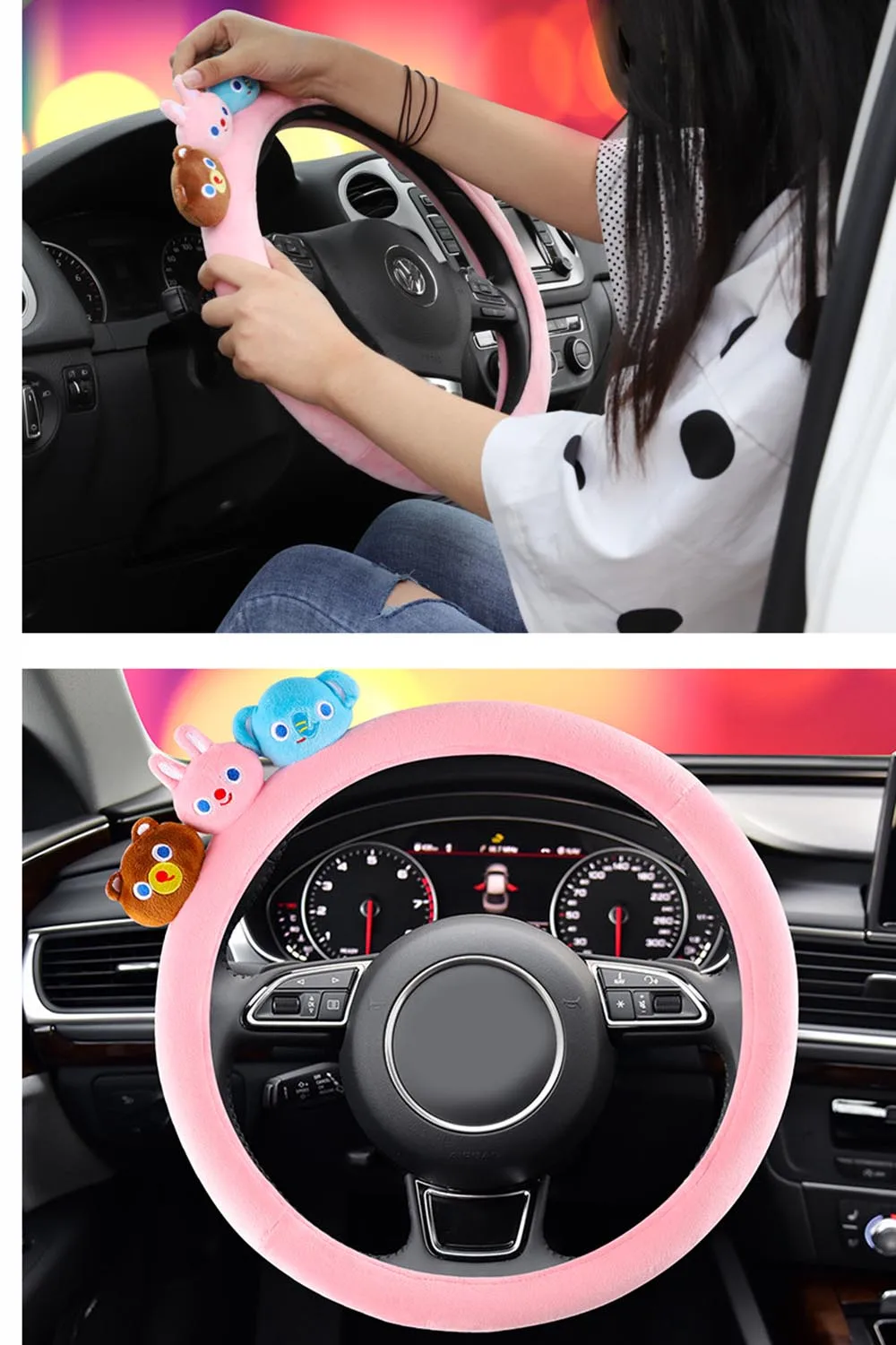 Декор автомобиля по мотивам мультфильма лук крышка рулевого колеса универсальные аксессуары для интерьера для женщин/мужчин дизайн автомобиля креативные плюшевые не наволочки