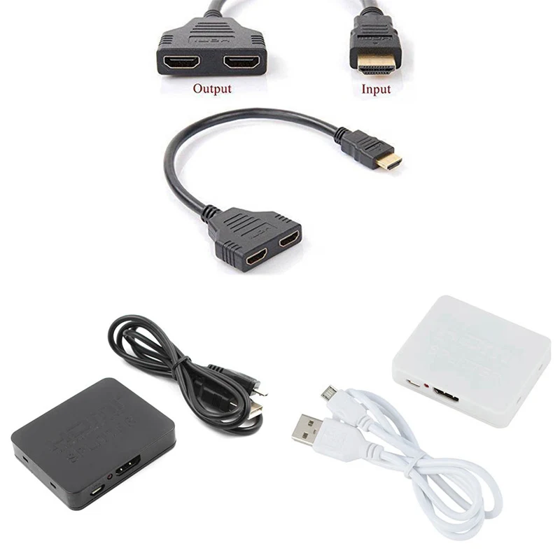 HDMI сплиттер 1 на 2 выхода, так что HDMI порт для распределения двух HDMI портов аудио и видеораспределитель высокой четкости.