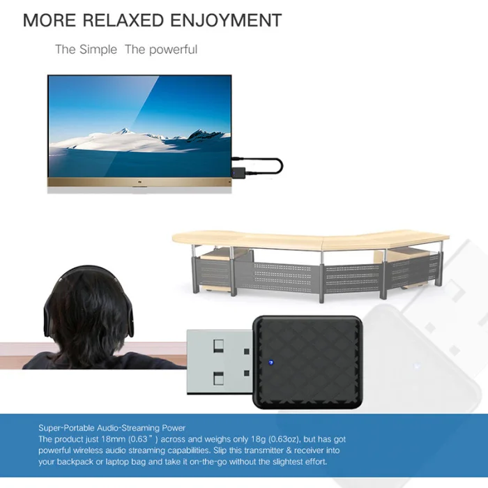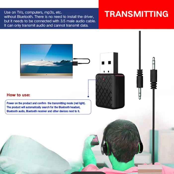 Режим передатчика: Беспроводная передача аудио с телевизора, не работающего по Bluetooth, домашней стереосистемы или CD-плеера на наушники или колонки Bluetooth