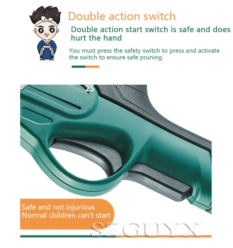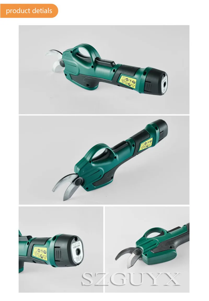 Название продукта: электрические секаторные ножницы Аккумулятор: 7,2 Время зарядки: 3-5 ч Диаметр отделки: свежая пробка 25 Длина: 310 мм Вес: 0,7 кг Размер упаковки: 80*320*135 мм