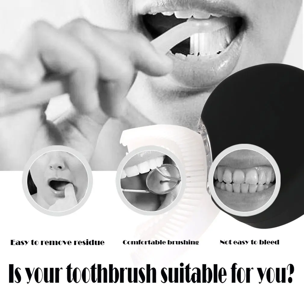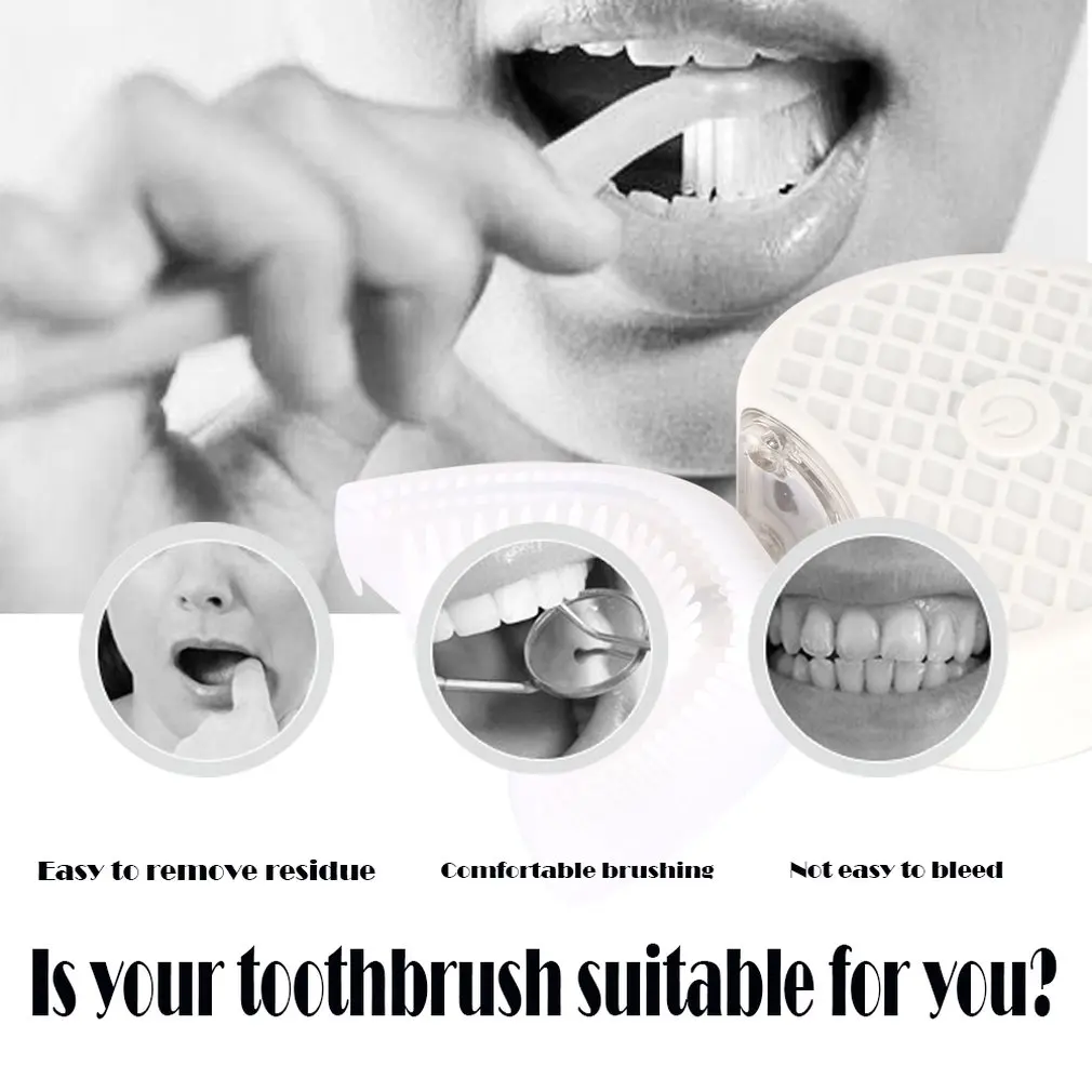 U-образная головка щетки, полноразмерная чистка зубов 360 ° может быстро и чисто очистить поверхность и внутри зуба в то же время 360 °.