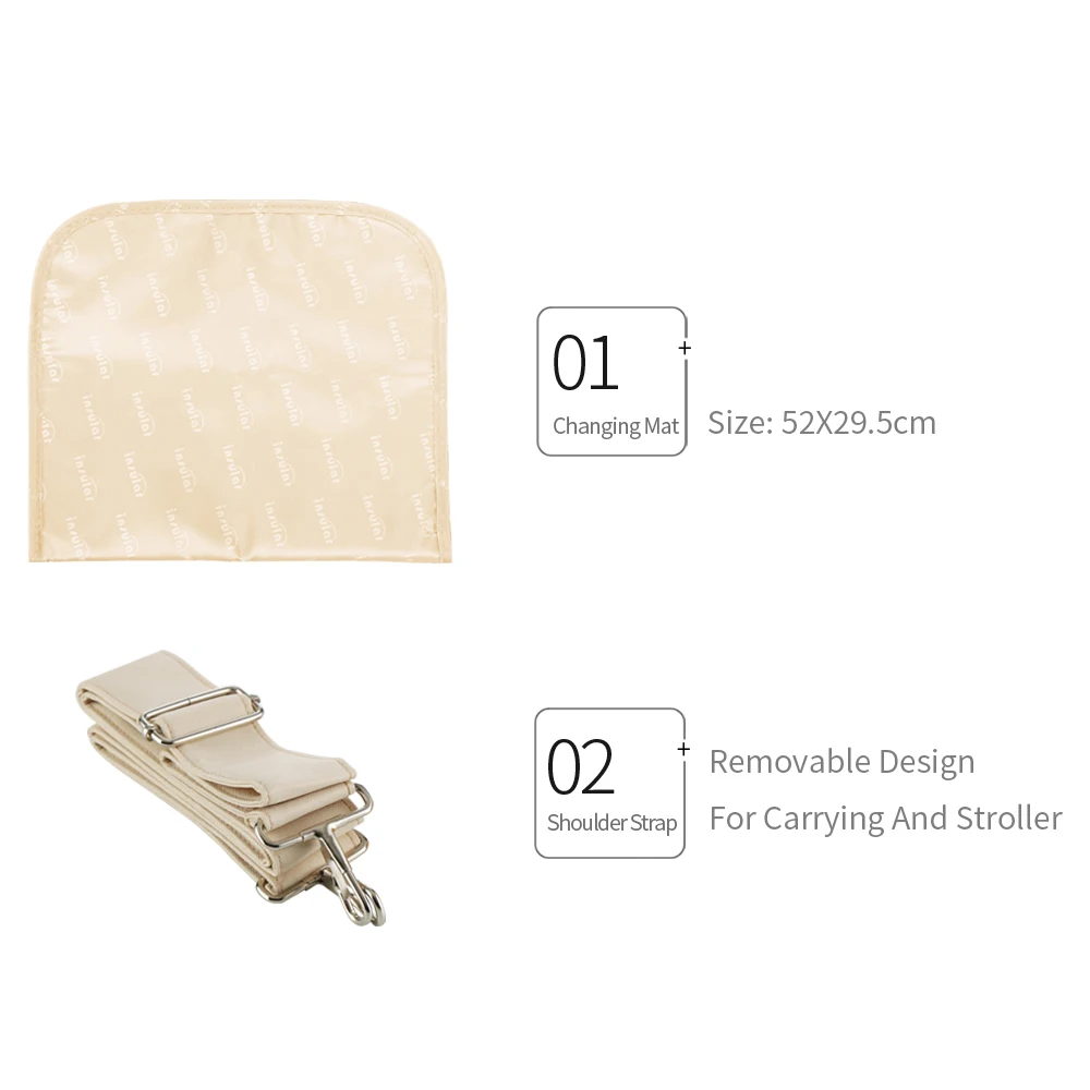 Come with practical shoulder strap, easy for carrying, an changing mat for diaper changing.