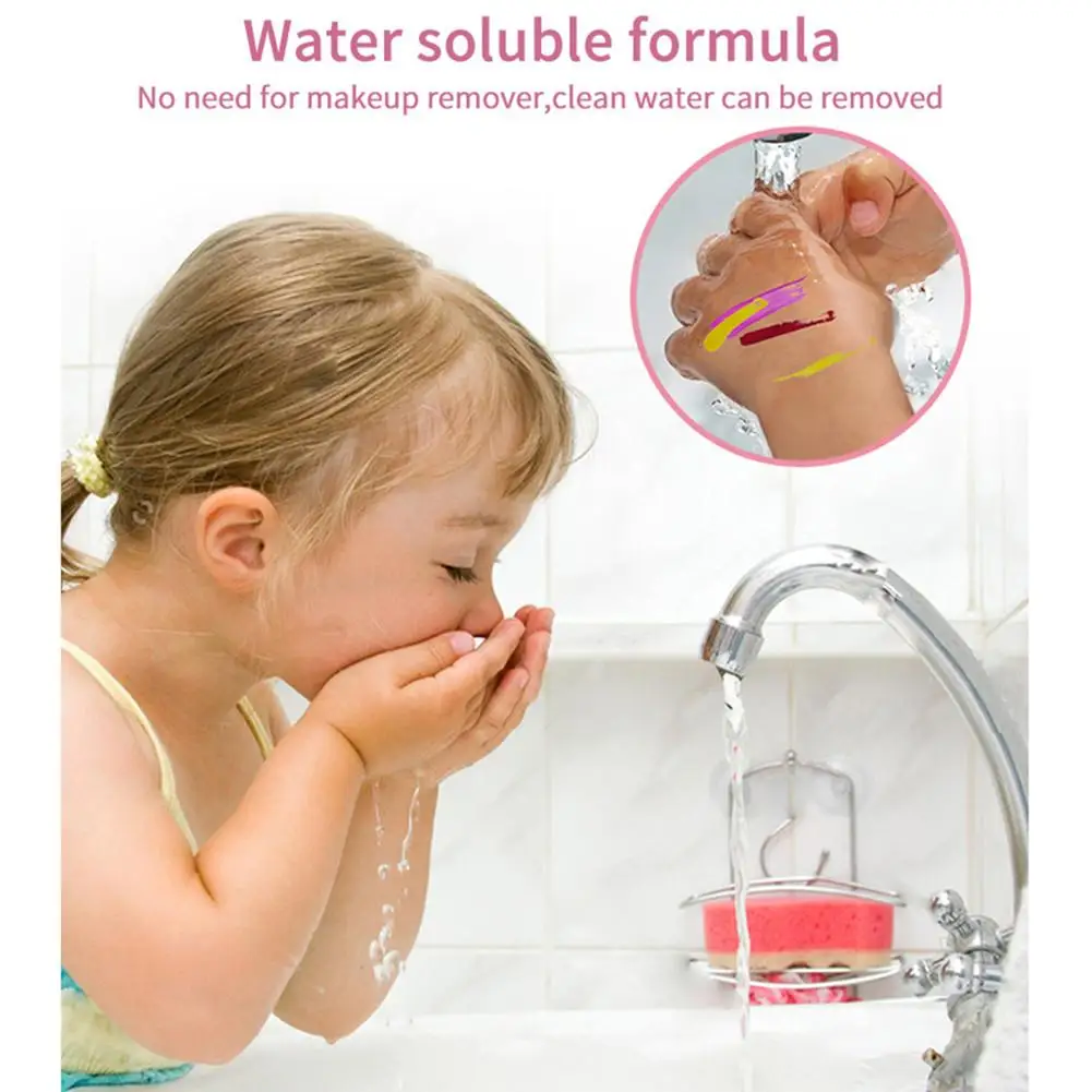 1. Макияж использует улучшенную водорастворимую формулу и может быть удален после стирки. Он специально разработан для детей, поэтому он мягкий и благоприятный для кожи, оставляя кожу неровной. При очистке кожи вы просто моете ее водой и не оставите следов, что является безопасным и удобным.