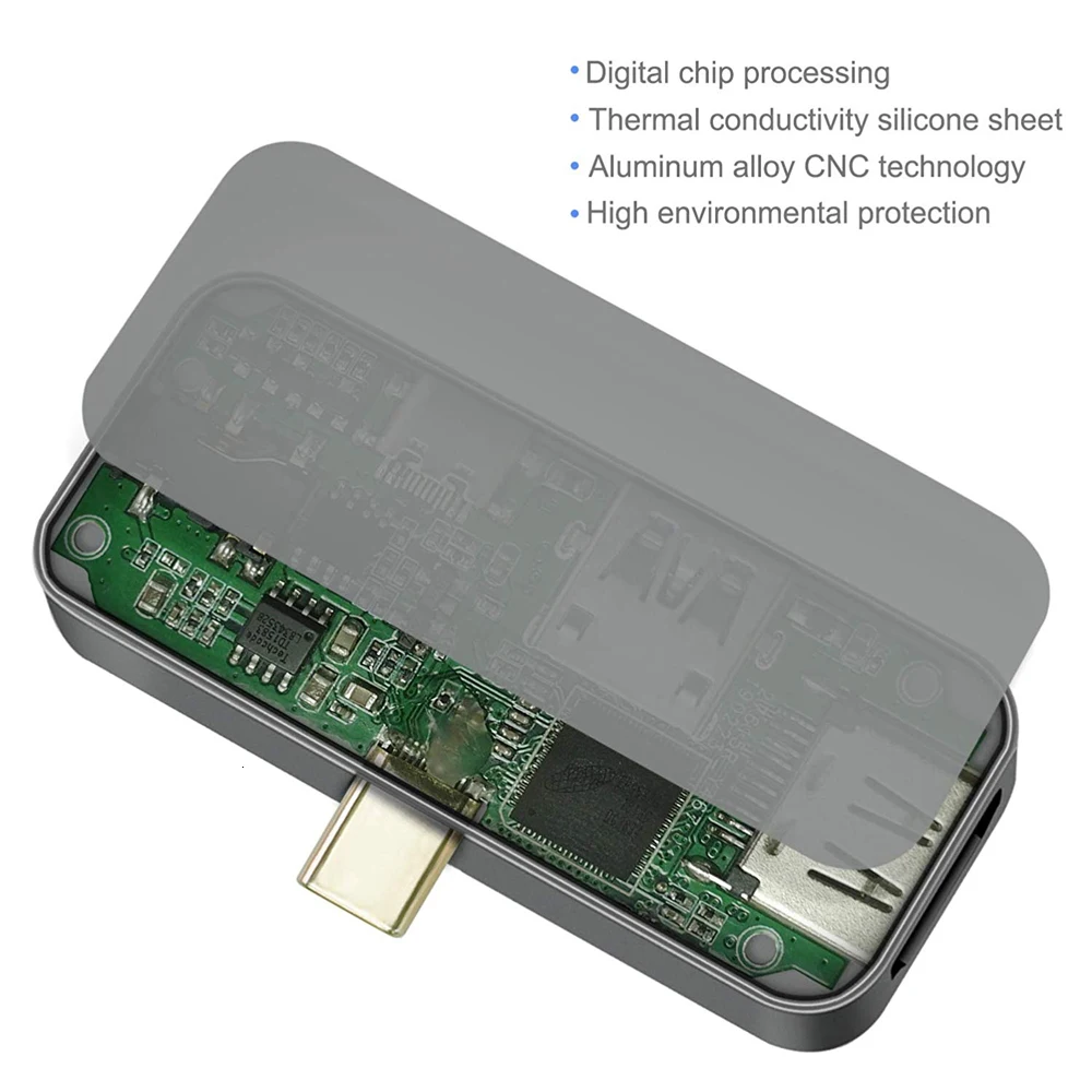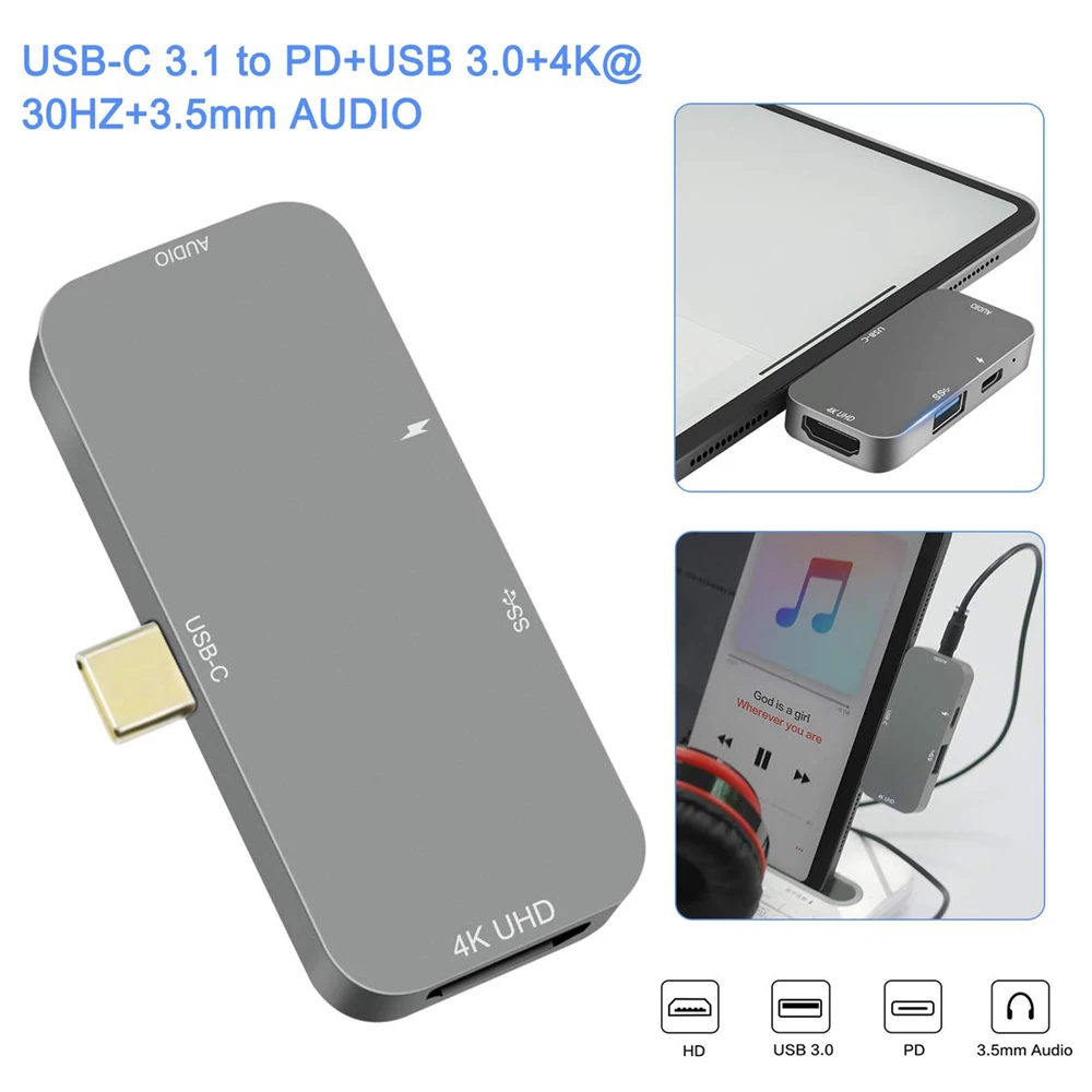 Все в одном: PD зарядки, 3,5 мм/0.14in для наушников, USB 3,0 порт HDMI 4K @ 30 Гц