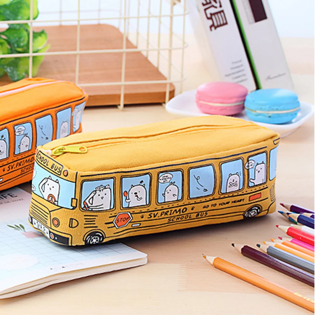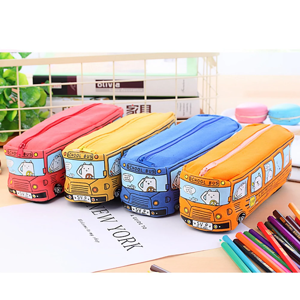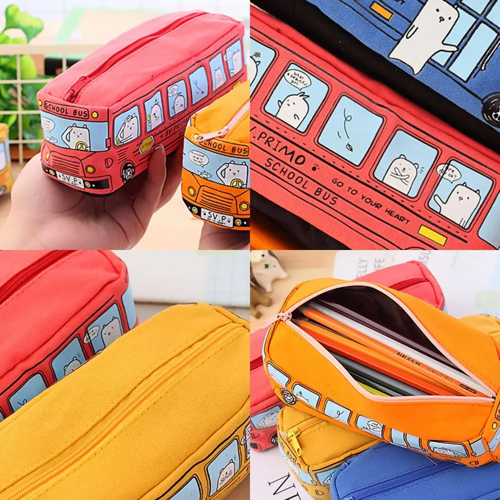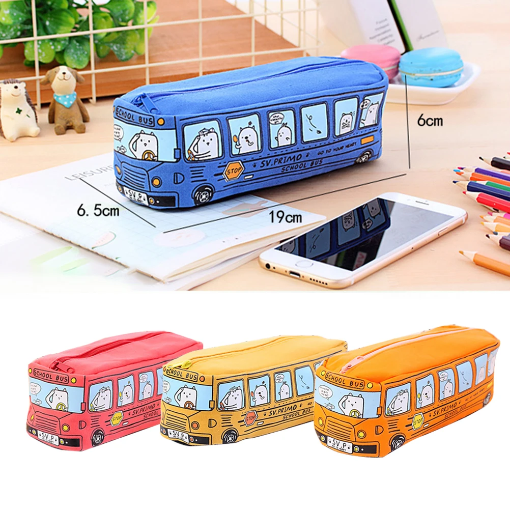 Прочный холщовый материал, креативный в форме автобуса и милый Принт, специальный креативный дизайн делает их любимые Канцтовары для ваших детей.