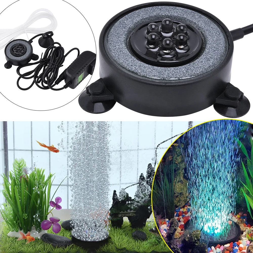 * Отличные украшения для вашего аквариума: светодиодный светильник медленного изменения цвета и комбинация airstone