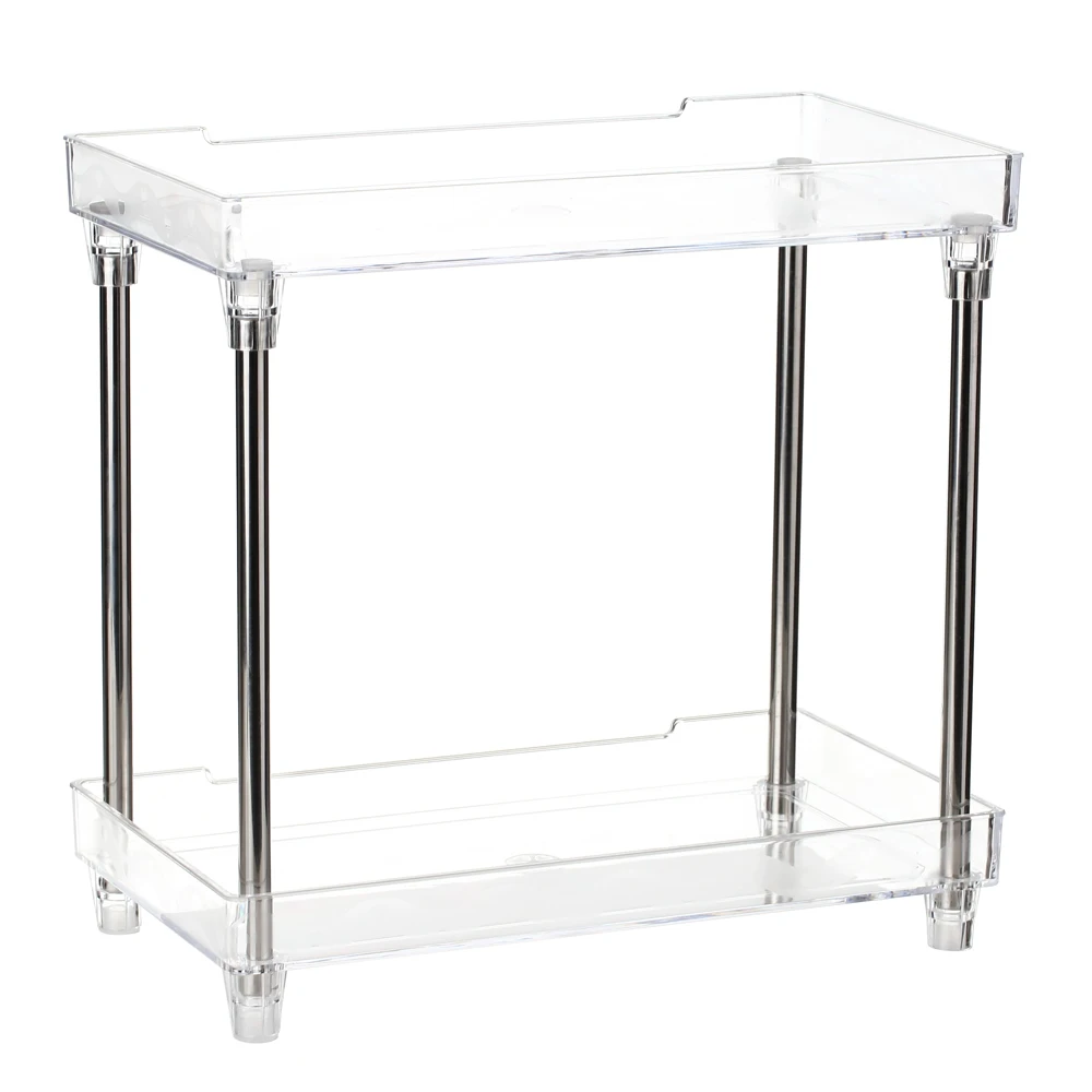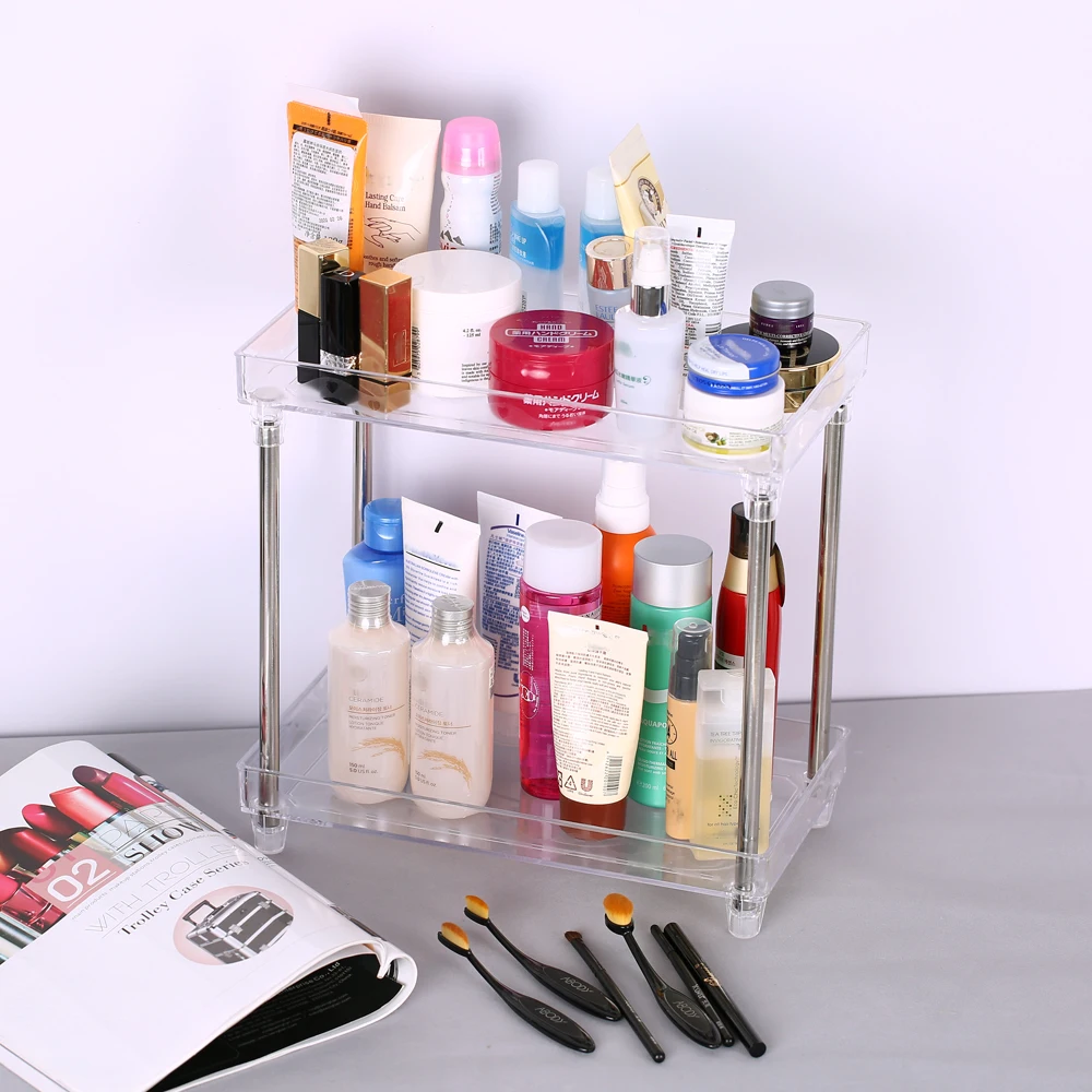 В 2-ярусная полка для хранения косметики позволяет организовать столешница для ванной комнаты и туалетный столик простой и легкий. Он обеспечивает много места для организации макияжа, очищения лица, мытья тела, мыла, лосьона и многого другого. Отдельно стоящая конструкция позволяет легко разместить там, где требуется больше места для хранения. Его можно использовать в ванной, спальне, кухне, офисе, прачечной и т. д.