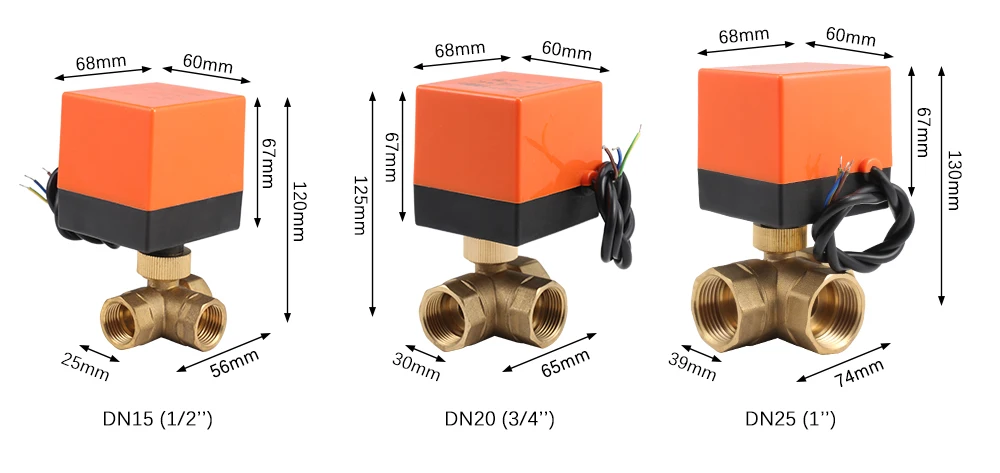 230 V 3-сторонний выход 3-жильный Электрический шаровой клапан с резьбой