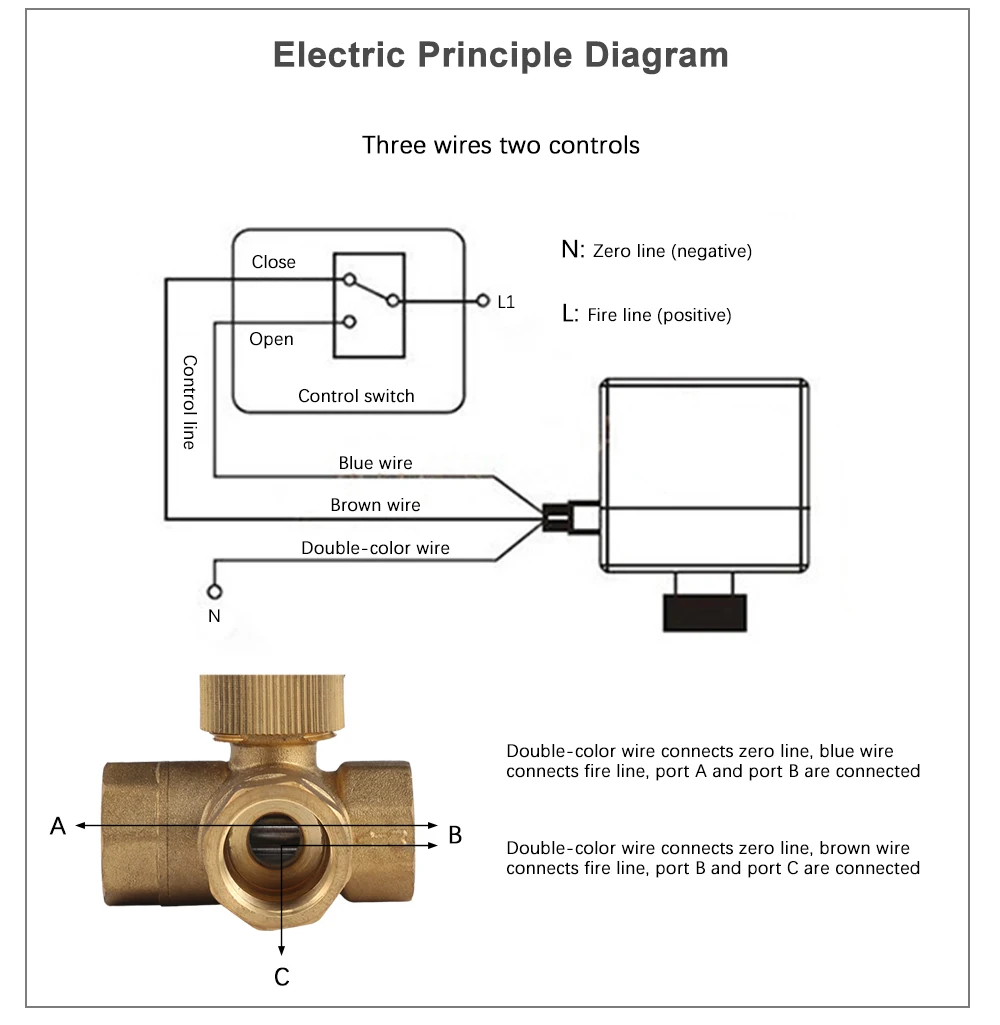 ● Электрический двухходовой шаровой клапан состоит из привода и латунного клапана.