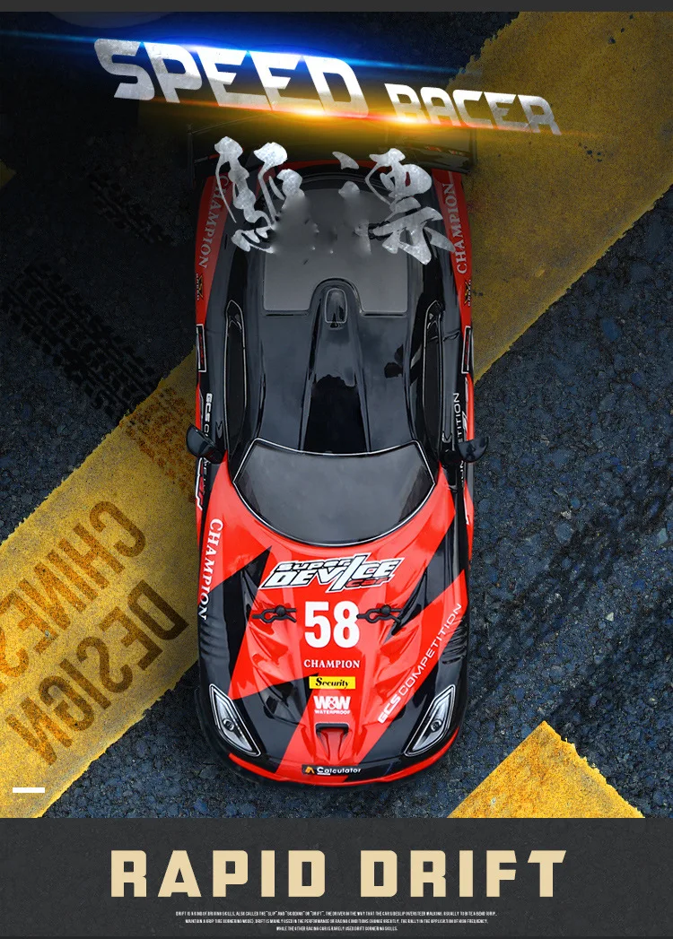 Название продукта GTR / Dodge Viper 4 колеса (4WD) Drift R / C Rockstar дистанционный радиогоночный автомобиль Радиоуправляемый автомобиль Характеристика Масштаб: 1/16 Цвет: красный, белый, золотой Материал: АБС-пластик Частота: 2.4GH Расстояние управления: около 50 м АВТОМОБИЛЬНАЯ БАТАРЕЯ: 6В 700 мАч аккумуляторная батарея (в комплекте) Батарея передатчика: 1X9 V 6F2 Время работы: около 10-20 минут Размер автомобиля: 27,5*8*12,5 см Функция Ускоритель: вперед/назад/влево/вправо/дрейф