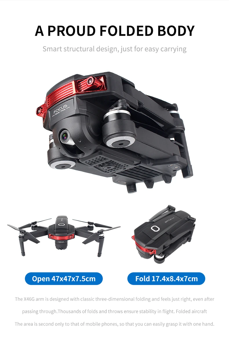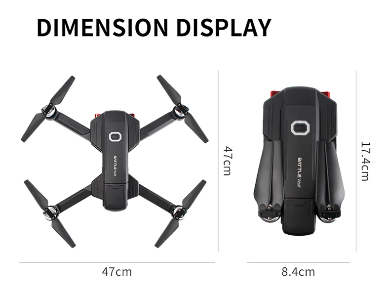 Quadcopter size: 47 x 47 x 7.5cm (unfolded) 17.4 x 8.4 x 7cm (folded)