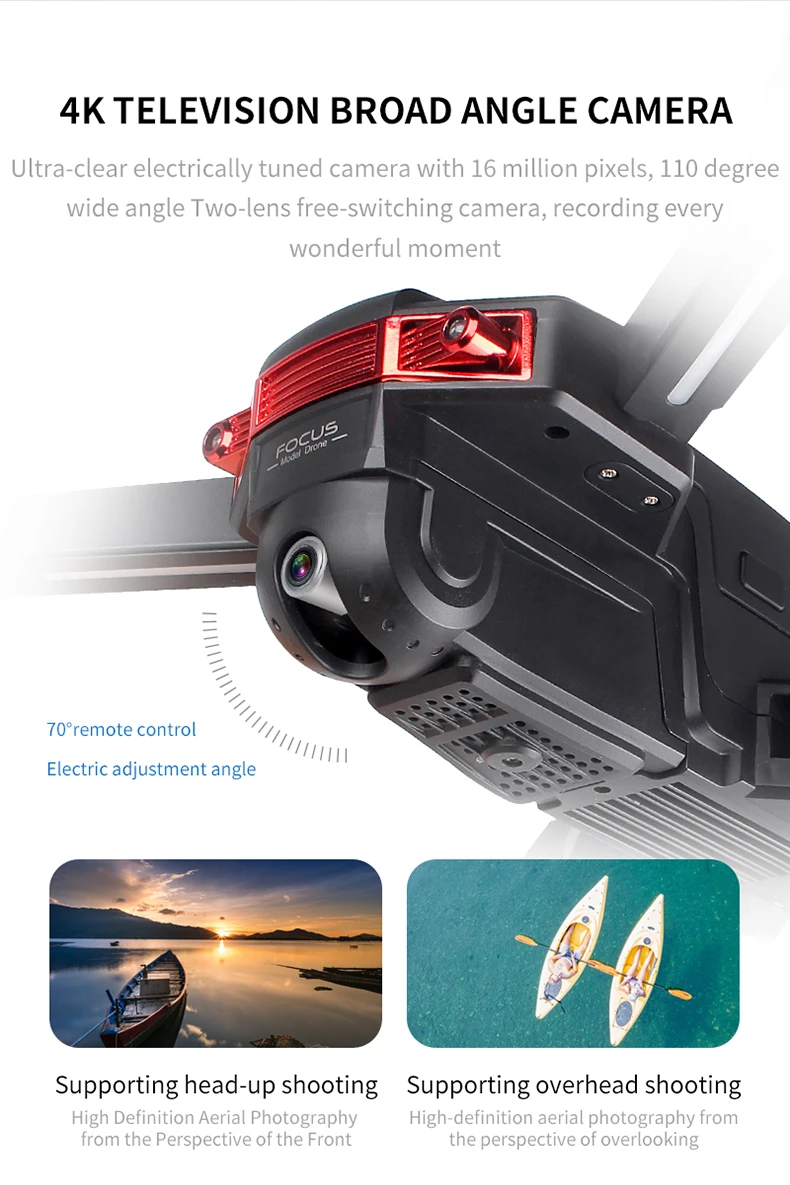 5G WiFi 4K camera drone, equipped with brushless motor with high service life, high speed and dynamic wind resistance, built-in six-axis gyro sensor, GPS positioning chip, barometer, optical flow lens, multiple hardware-assisted flight stability Greatly upgraded, unique folding fuselage structure, simple storage, and portable.