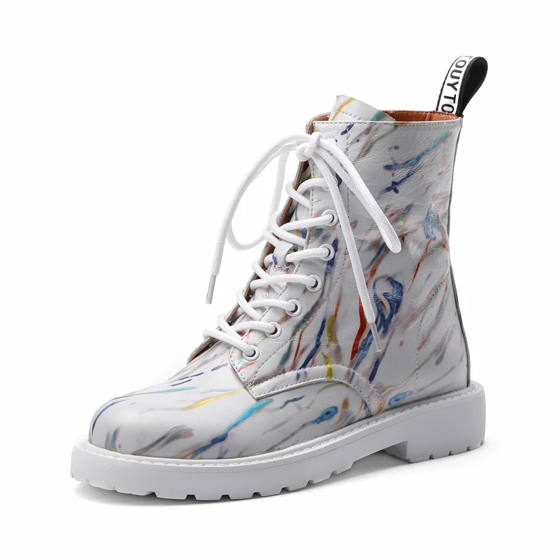 Ботинки из натуральной коровьей кожи SmallHut Модель: E184 (2019 SmallHut женские ботинки из натуральной коровьей кожи) Цвет: черный/белый/серебристый/фиолетовый Размер: 33,34, 35,36, 37,38, 39,40, 41,42, 43,44 Сезон: Осень Внутренний материал: натуральная коровья кожа Материал каблука: Резина Материал подошвы: Резина Высота каблука 3,5 см Ширина передней части: 10 см (Размер: 36) Модный элемент: круглый носок Пожалуйста, убедитесь, что вы оставили нам свое полное имя для доставки, так как российские клиенты требуют.