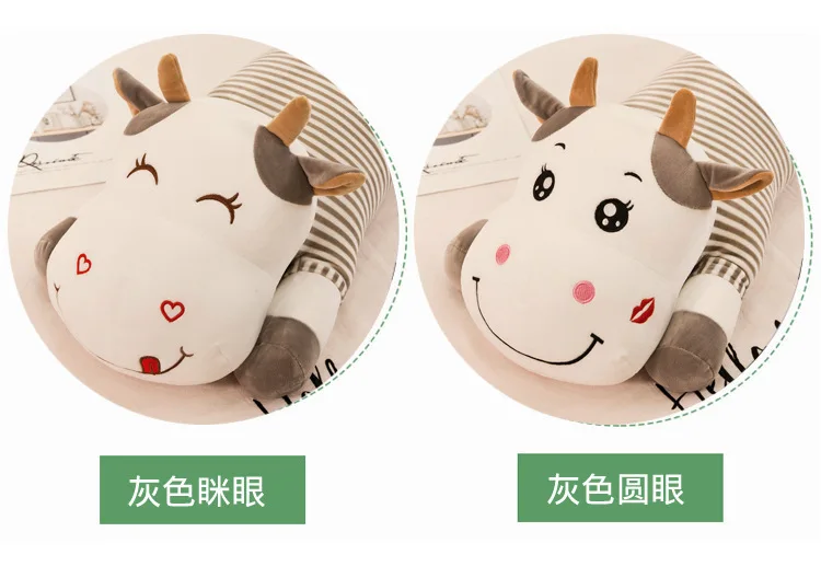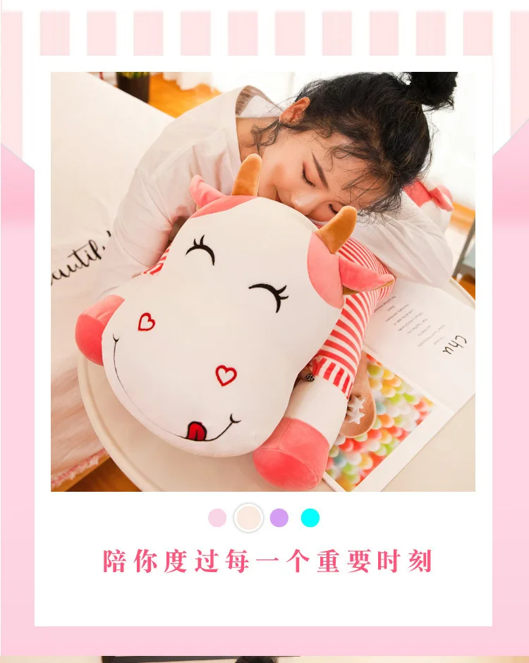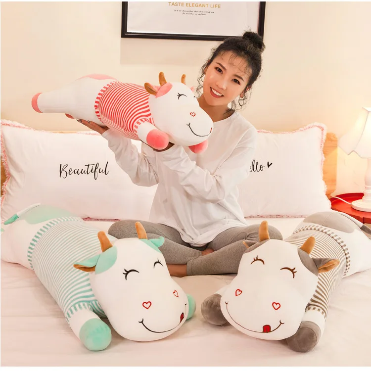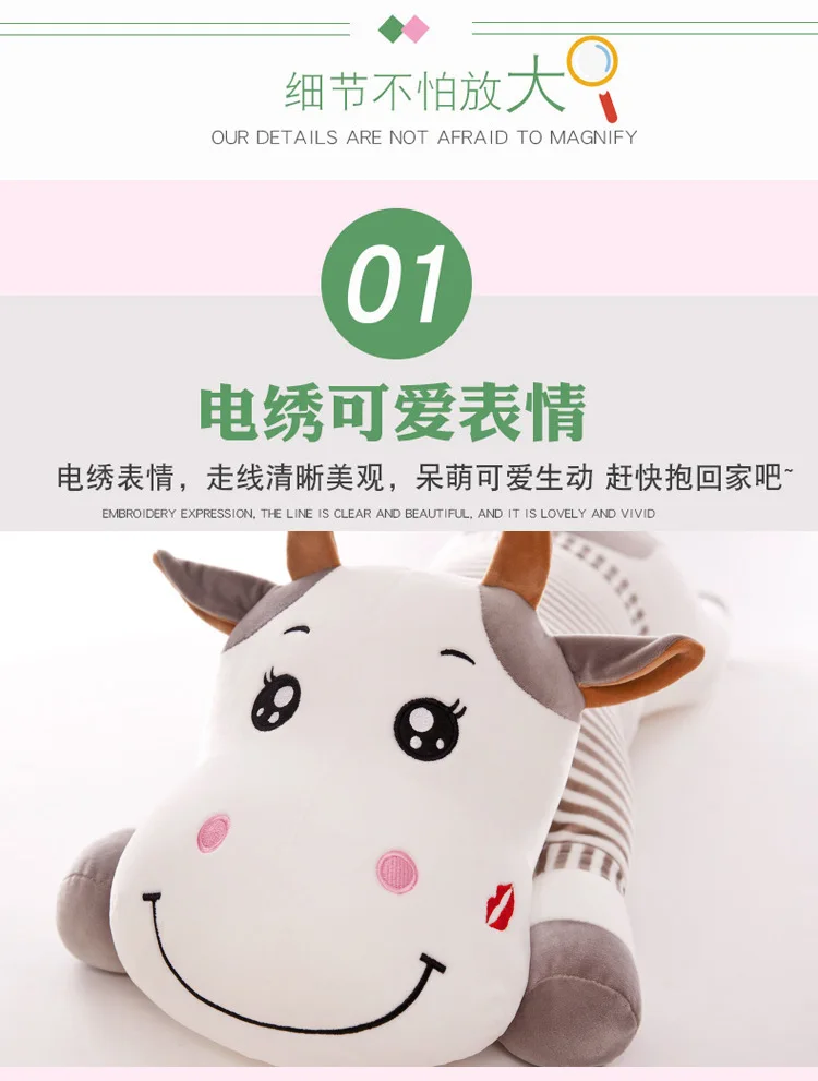 Cartoon Cute Cattle Adorable Paragraph Stripe Bovine Pillow Fur Toys Waist By Back Cushion Pillow Gifts