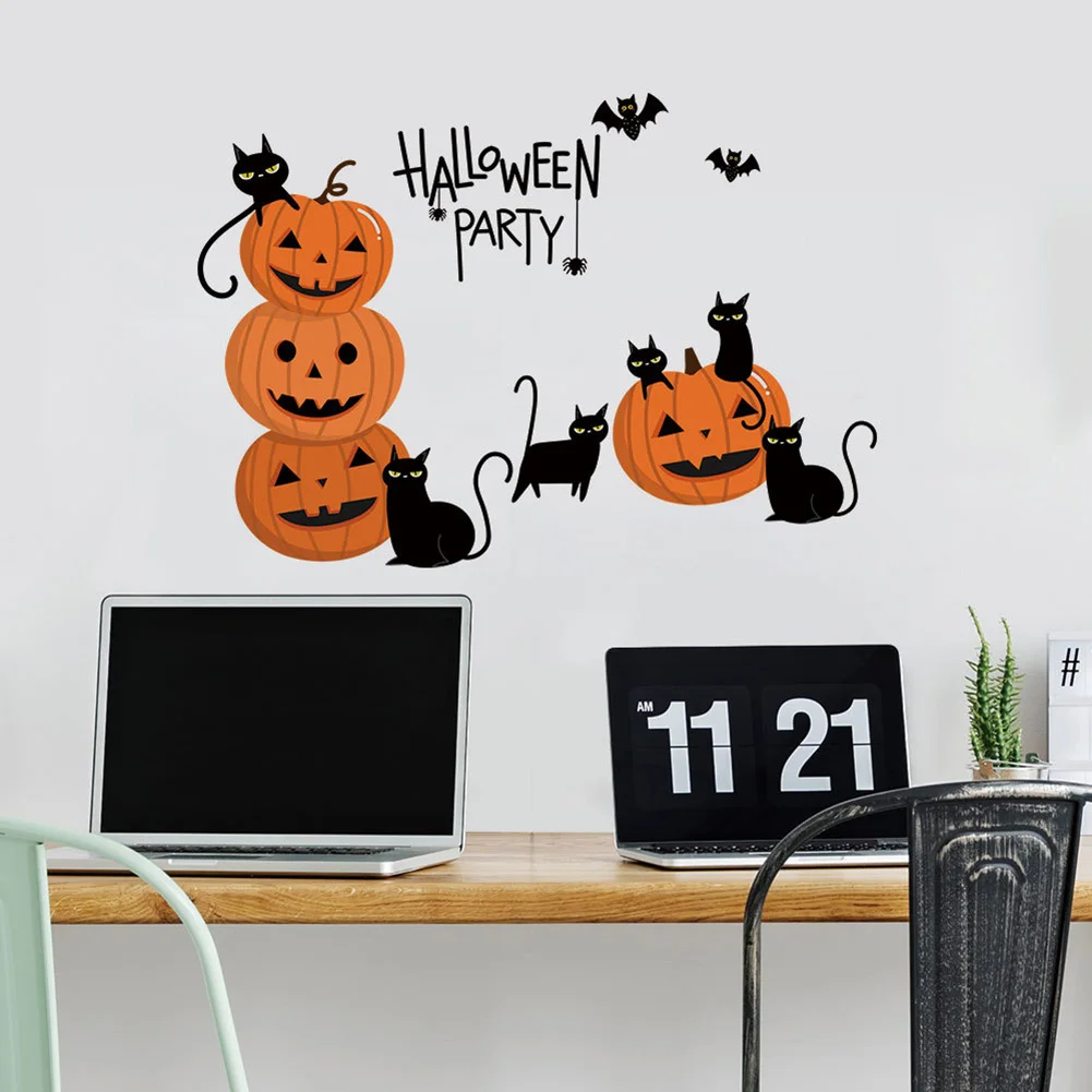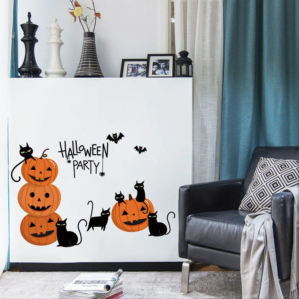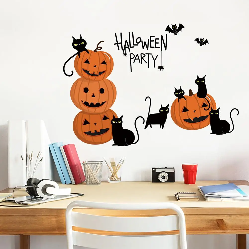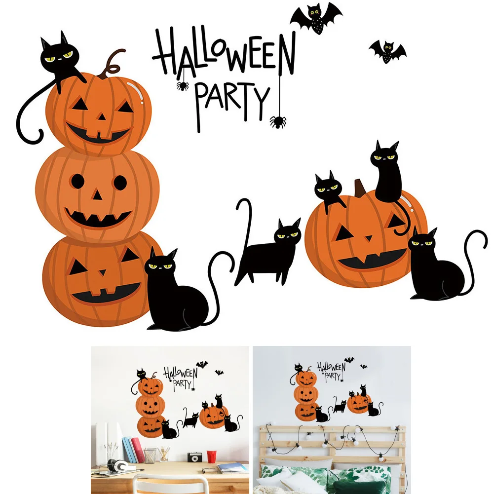 Вечерние наклейки на стену с изображением летучей мыши тыквы кошки Хэллоуина