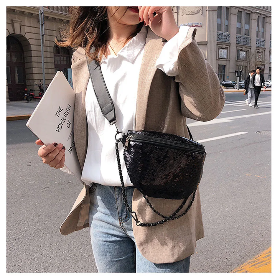 Женские сумки с блестками, модные золотые поясные сумки, женские поясные сумки, нагрудные сумки, сумки для телефона, маленькие сумки через плечо с цепочкой
