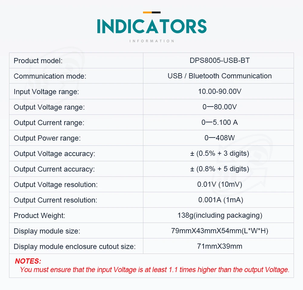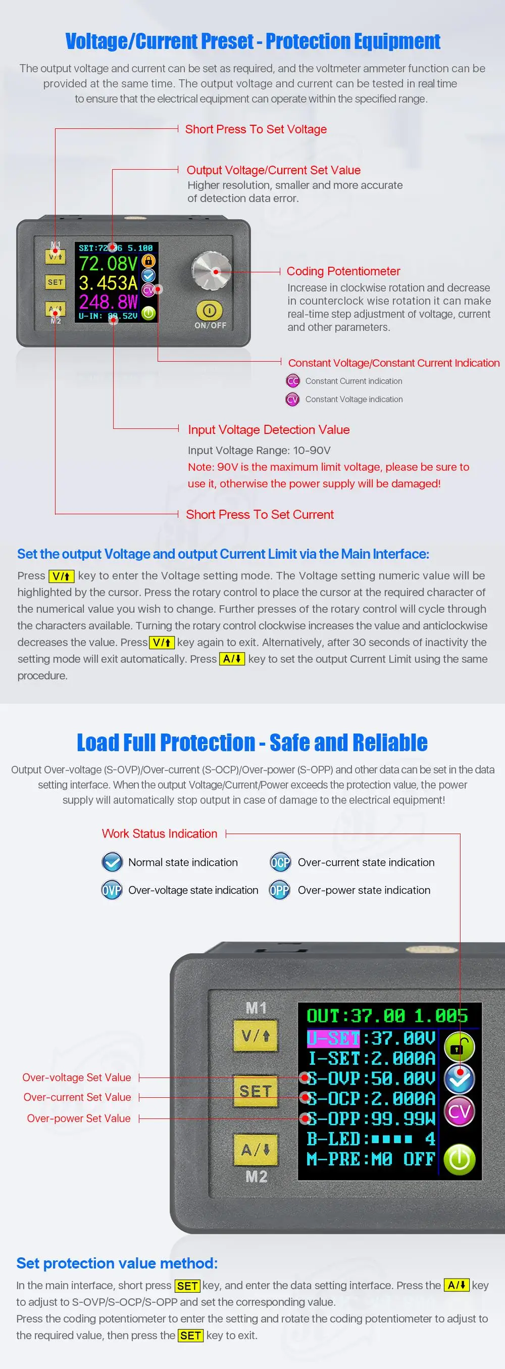 Диапазон входного напряжения: DC10-90V Диапазон выходного напряжения: 0-80,00 в