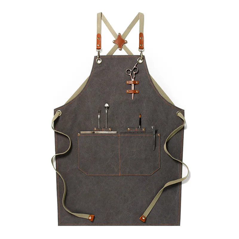 -- Описание... Купите 2 получите дополнительную скидку 10% (Купите 2 или более одного и того же товара, получите дополнительную скидку 10% автоматически) Унисекс серый и хаки холст длинный фартук с нагрудником с удобными карманами.Пожалуйста, отправьте нам свой логотип (ai/cdr), если вы хотите напечатать свой собственный логотип.