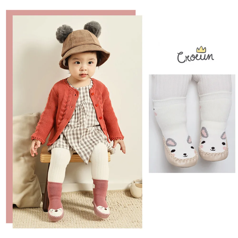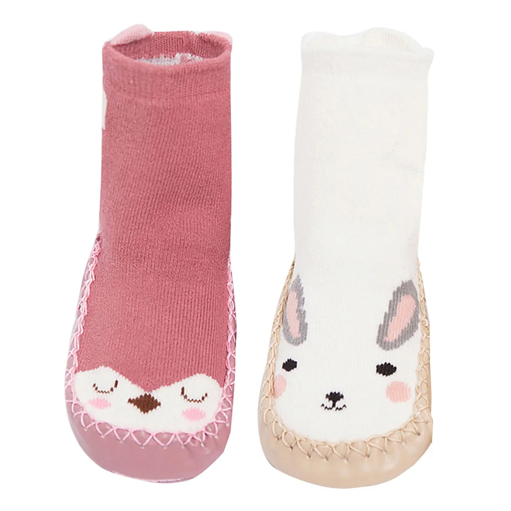 2 пары детских носков с резиновой подошвой, носки для новорожденных, Осень-зима, детские носки-тапочки, нескользящие носки с мягкой подошвой для мальчиков и девочек