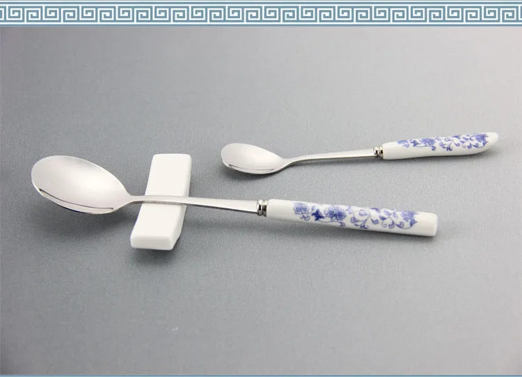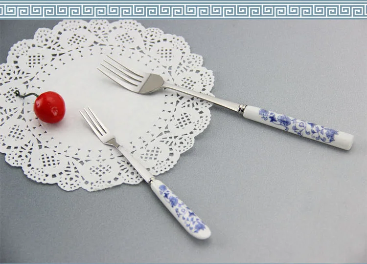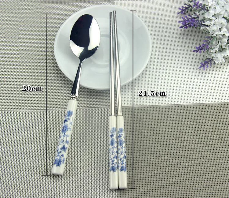 Синий и белый фарфор посуда, вилка, ложка Ножи палочки дозирующая детская ложка для Нержавеющая сталь Особенности