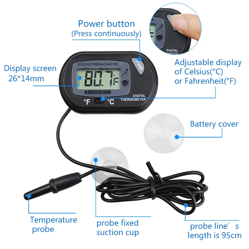 Цифровой термометр для аквариума с ЖК-дисплеем, погружной измеритель температуры воды
