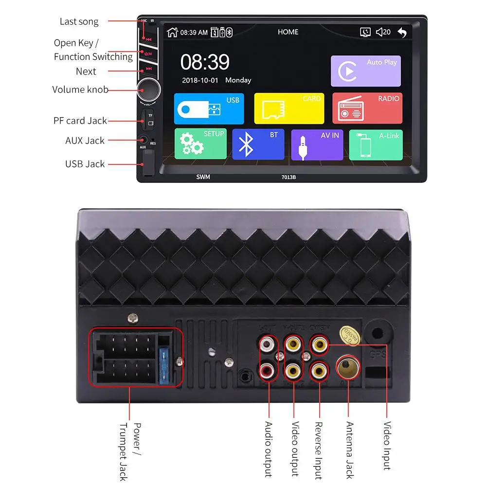 Steering wheel control function: support. Bluetooth model: version 4.0. Power amplifier chip :TDA7388. Radio frequency :87.5~108MHz. Video output: support.