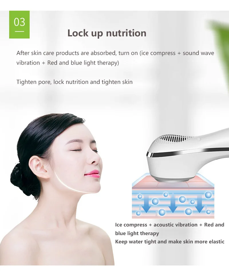 Спецификация:1. Название продукта: светодиодный светильник, ультразвуковой массажер для лица2. Мощность: 1 Вт3. Номинальное напряжение: DC5V4. Напряжение: 3,7 V5. Батарея: 1000 мАч литиевая батарея6. Материал: АБС-пластик7. Время зарядки: 3 ч8. Размер: 55x55x150ммОбработка кода (6-10 °C ):1. Сужает поры кровеносных сосудов, улучшает грубые поры;2. Укрепляет коллагеновое волокно, делает вашу кожу упругой, выцветает морщиныИ гусиные лапки;3. Эффективно уменьшает варикозное расширение вен, более вероятно удаление опасных отходов,Может помочь выцветать и устранить темные пятна;4. Для уменьшения чувствительности нерва, уменьшения покраснения и отечности кожи, особенноДля чувствительной кожи.Горячая обработка (38-42 °C ):1. Разогревайте, чтобы человек чувствовал себя тепло и комфортно, расслабляйте мышцы, снимайте боль и болезненность;2. Способствует циркуляции крови и помогает лучше поглощать продукты по уходу за кожей;3. Улучшает метаболизм кожи, выделяет отходы токсинов, помогает выцветать мешочек для глаз и темный круг.Светодиодный светильник:1. Красный светильник: отбеливание кожи и увлажнение2. Синий светильник: удаление морщин1. Омоложение кожи, усадка пор, подтяжка кожи, улучшение упругости кожи и блеск кожи.2. Лимфодренаж, улучшает кровообращение, способствует детоксикации.3. Помогает продуктам по уходу за кожей глубоко впрыснуть в кожу, избегайте высвобождения питания. Увлажняющий крем.4. Удаление морщин, анти-отечность.5. Подтяжка лица, отбеливание, удаление черных кругов.6. Стимулирует кровообращение, лимфодренаж, детоксикацию.Посылка включает в себя:1x ультразвуковой массажер для лица Горячий Холодный Молоток1x адаптер питания1x руководство на английском языке