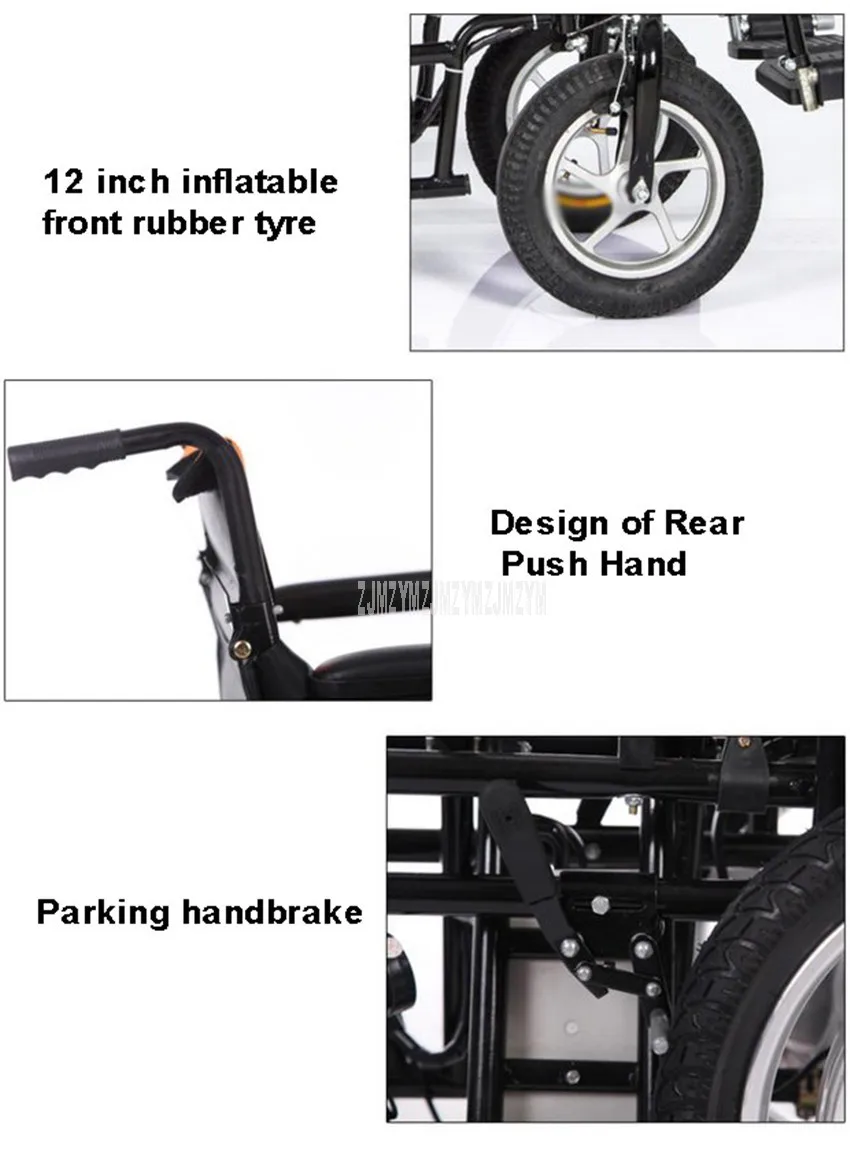 Характеристики: Название: электрическая инвалидная коляскаНапряжение зарядного устройства: 220 ВМощность двигателя: 500 ВтТипы батарей: свинцово-кислотная батареяЕмкость аккумулятора: 48V12AHВес нетто батареи: около 18 кгМаксимальный Пробег: 30 км (в зависимости от веса, состояния дороги, скорости, погоды и других факторов)Материал оправы: углеродистая стальШирина сиденья: 45 смПереднее колесо: 12 дюймовЗаднее колесо: 16 дюймовВес нагрузки: 100 кгЕмкость скалолазания: ≤ 20 °Расстояние торможения: ≤ 1 мРазмер изделия: общая длина 115 см, общая высота 92 см, общая ширина 76 смМинимальный размер после складывания: 95*40*92 см Посылка включает в себя:1 инвалидная коляска с батареей1x зарядное устройство Демонстрация товара: