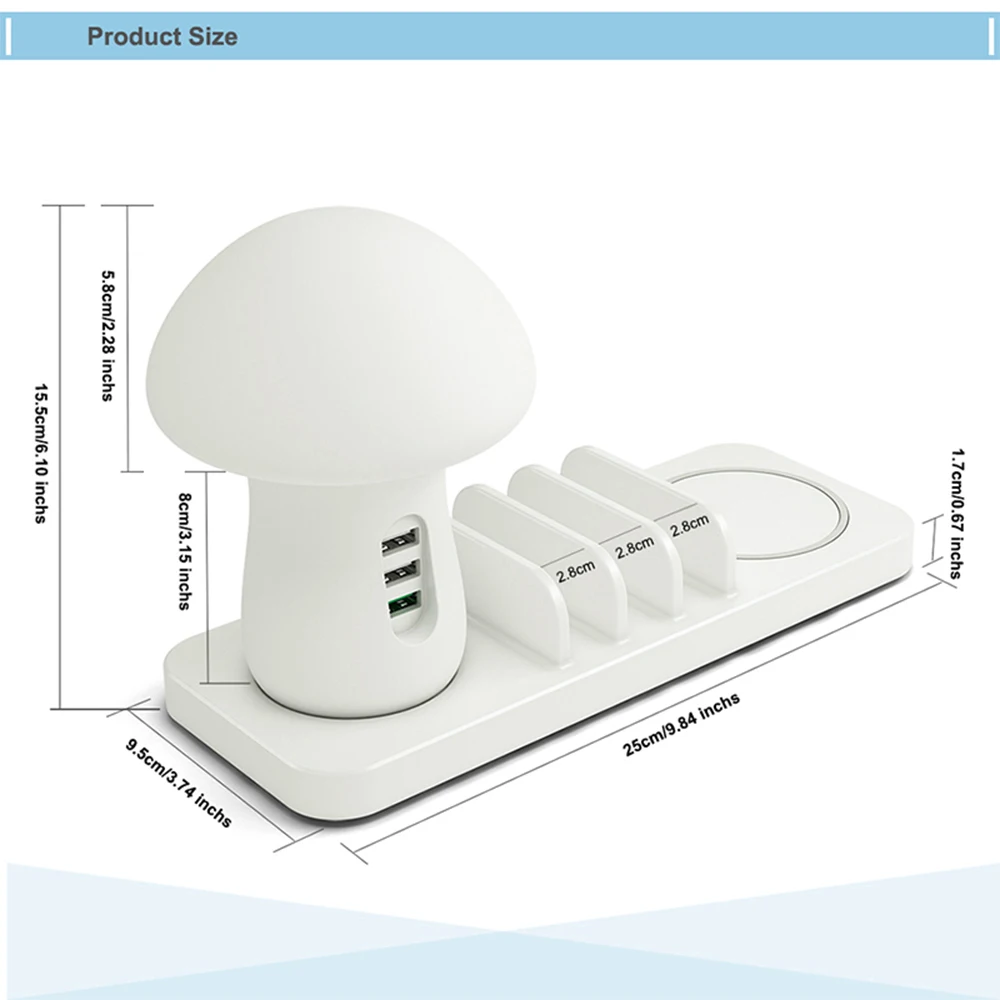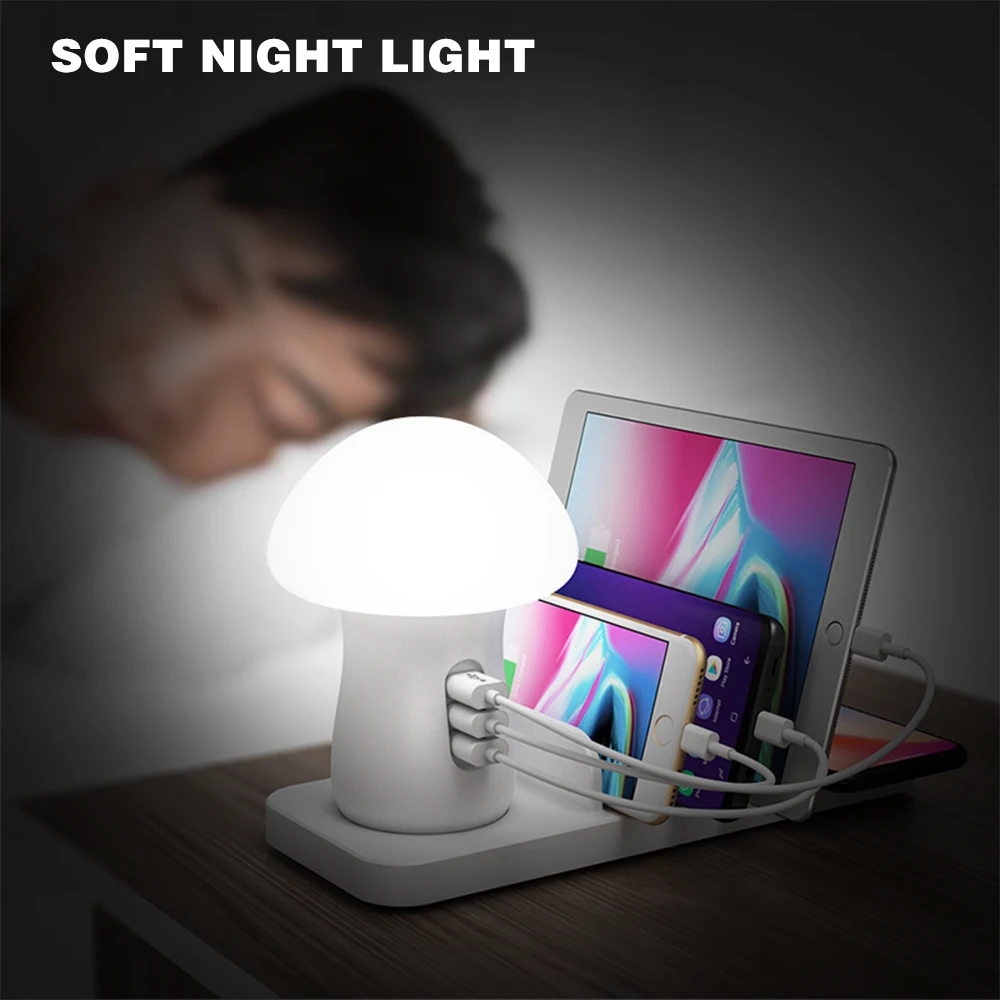 3-в-1 настольная лампа в виде гриба зарядное устройство предназначено с беспроводной зарядкой и кабель для зарядки для вашего мобильного телефона