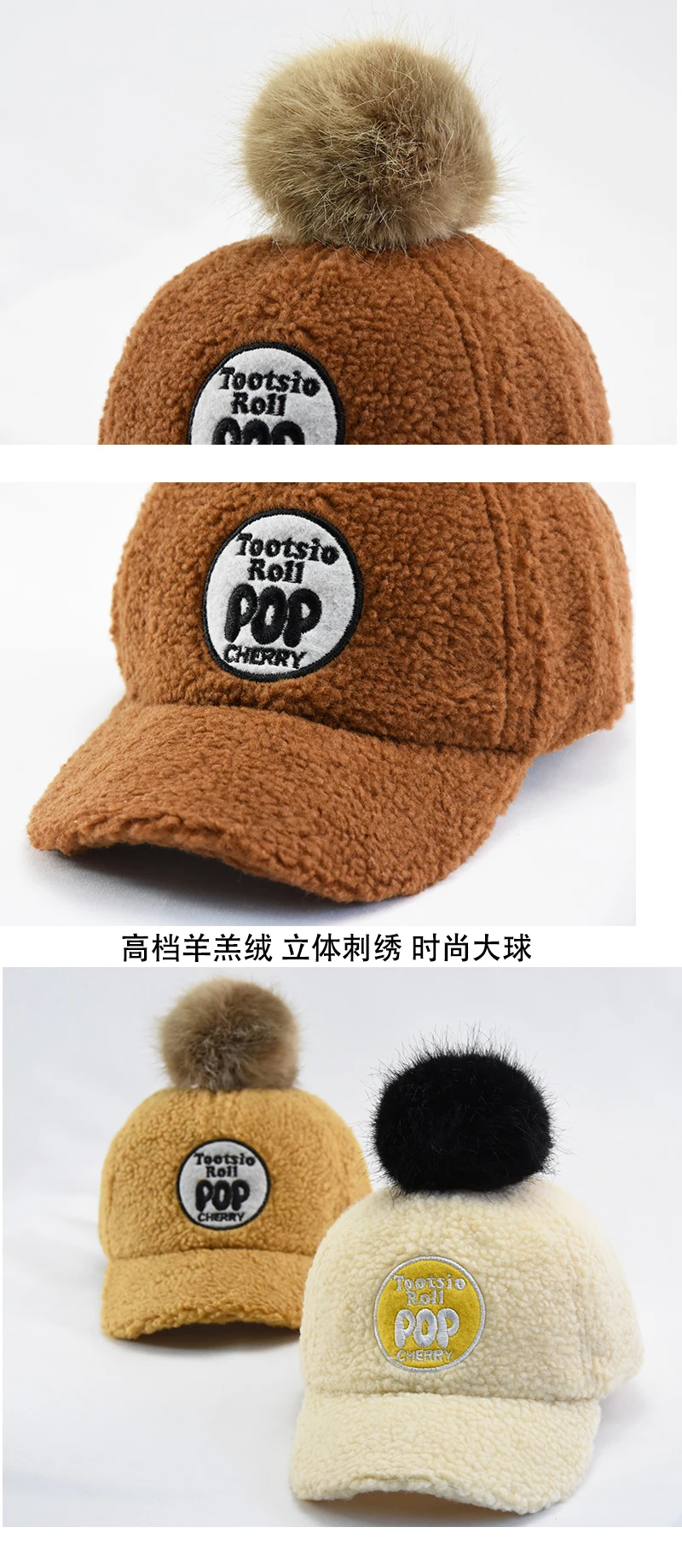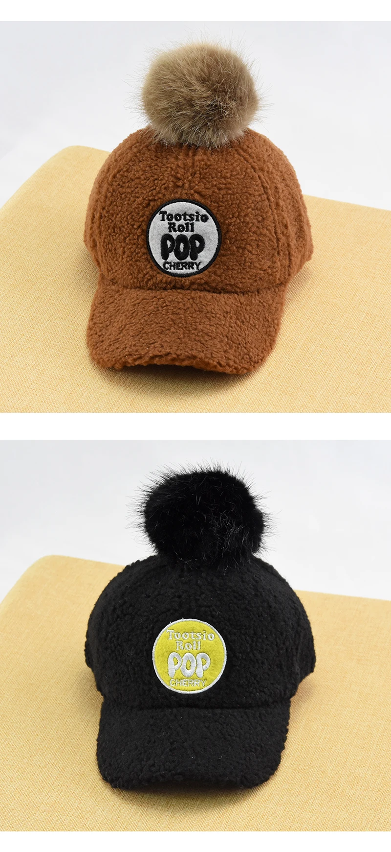 Зимние меховые шапки с помпонами для детей, Снэпбэк, овечья шерсть, помпон, Кепка водителя грузовика, детская бархатная бейсболка, Зимняя кепка для детей 2-8 лет