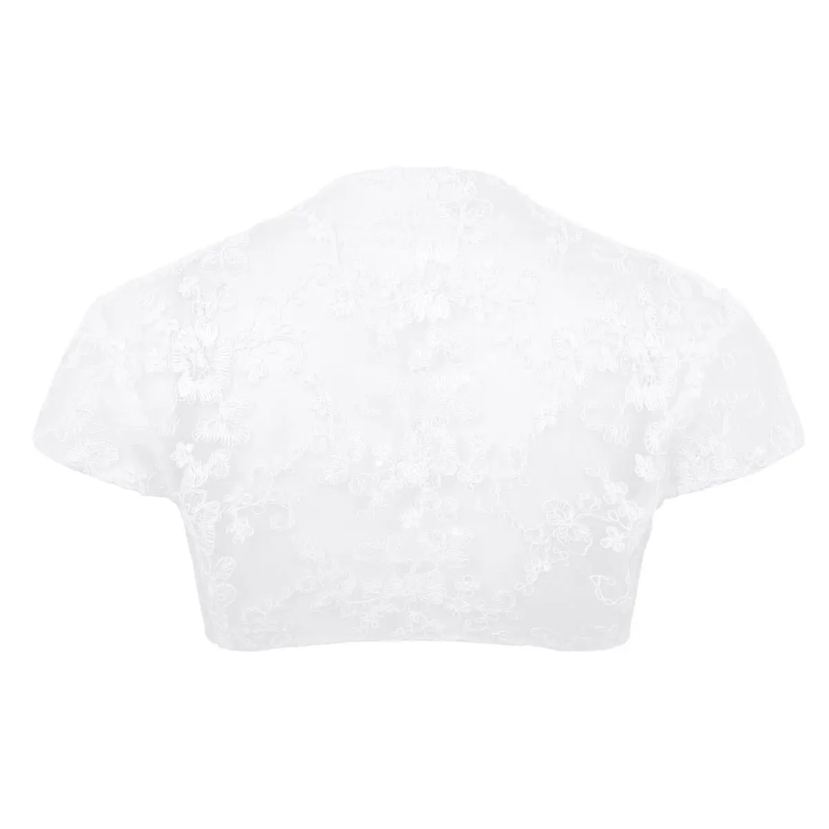 С короткими рукавами и открытой передней частью, двухслойная Прозрачная сетка с вышитым цветочным кружевом для украшения.