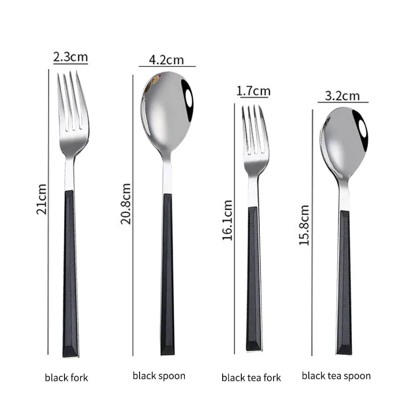 Размер: вилка 21*2,3 см/Ложка 20,8*4,2 см/чайная вилка 16,1*1,7 см/чайная ложка 15,8*3,2 см