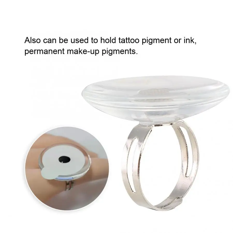В основном используется для удержания клея для наращивания ресниц, который может продлить отверждение клея. Также можно использовать для хранения пигментов татуировки или чернил, перманентных пигментов макияжа. Регулируемый дизайн кольца, подходит для различных размеров пальцев, удобен в использовании. Многоразовый и простой в чистке, прозрачный цвет, блестящий и простой в эксплуатации. Подходит как для профессиональной тату-практики, так и для домашнего использования.