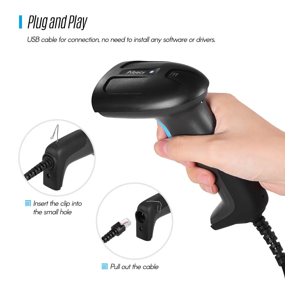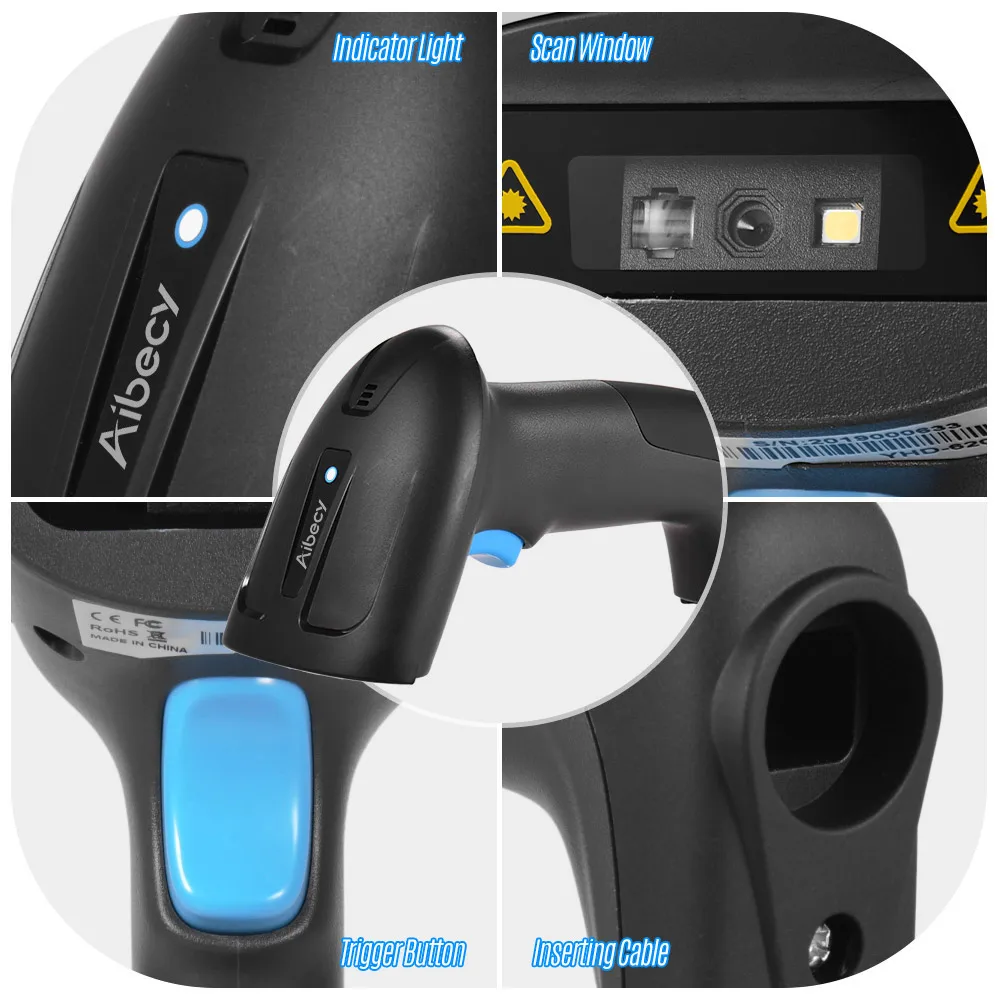 Aibecy 2-in-1 2.4G Wireless & Wired USB Barcode Scanner 1D 2D Bar Code Reader with Receiver USB Cable Plug and Play Rechargeable