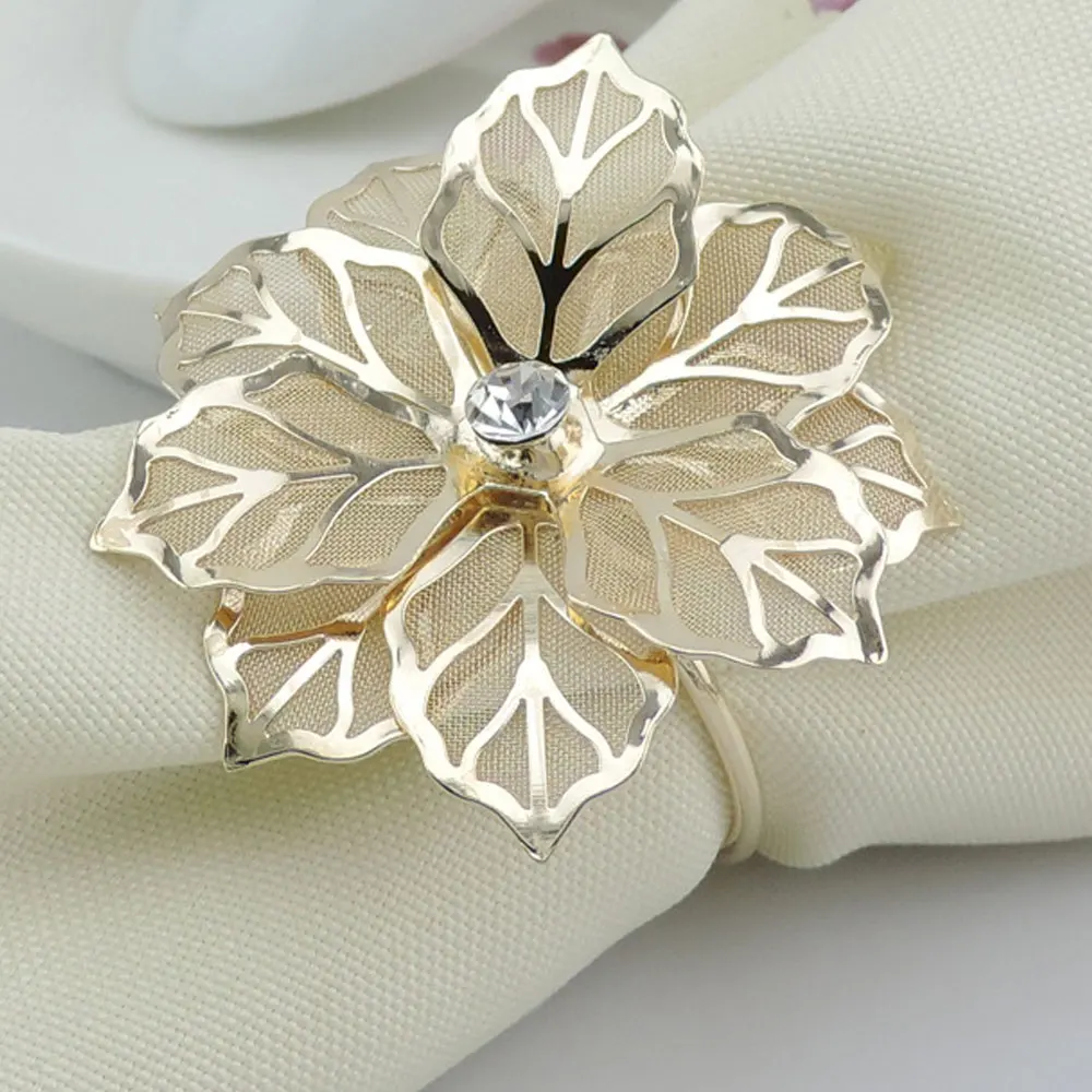 10 шт кольцо-цветок для салфетки Золотой держатель для салфеток цветок жемчуг банкет полотенце кольца для салфеток для свадебной вечеринки украшения