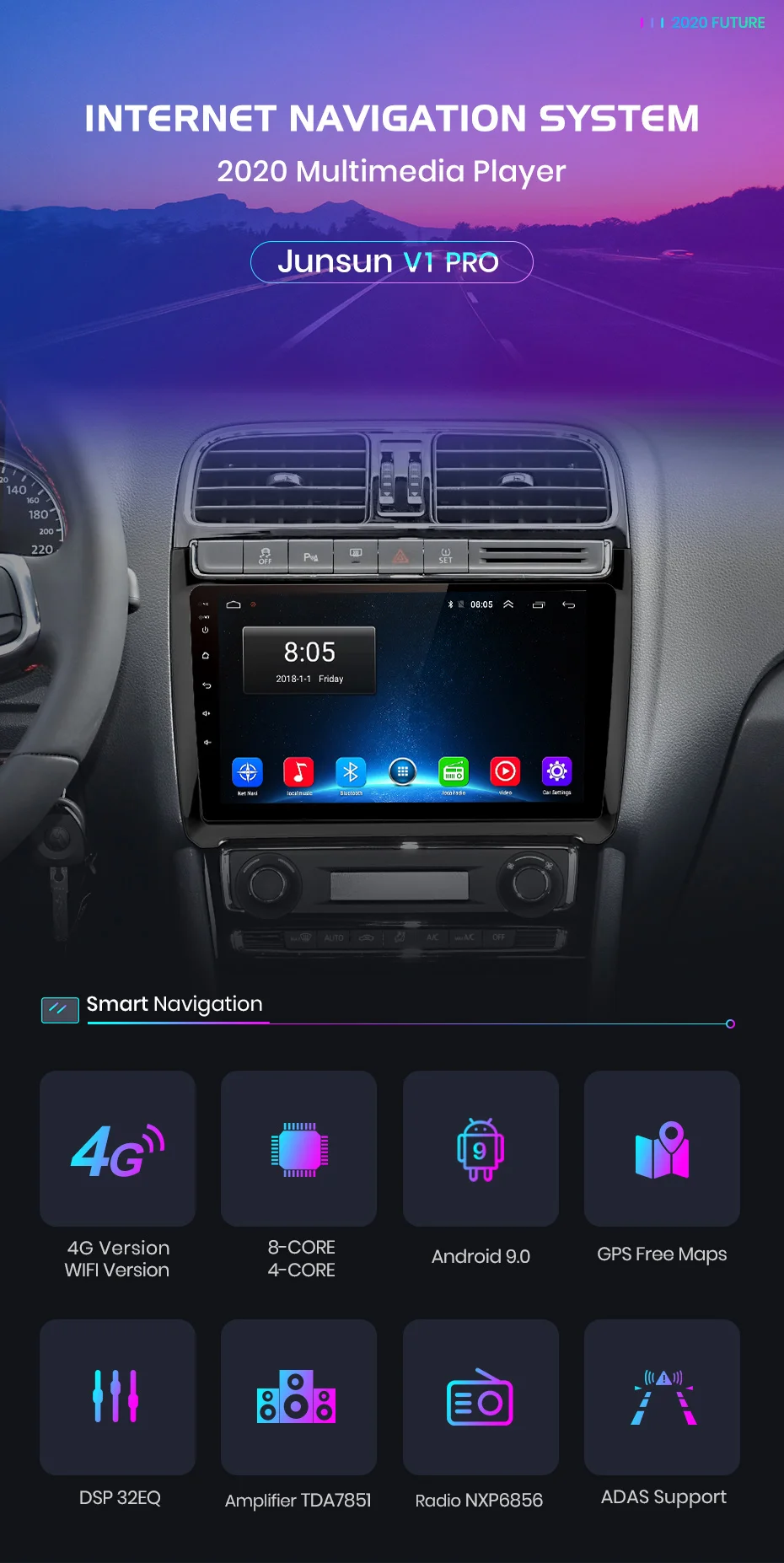 >> Junsun V1 for polo sedan volkswagen Function 9 inch 2.5D capacitive Screen + Quad Core 1.2GHZ CPU + DDR3 1GB (2GB optional)Flash + 16 GB Memory (32GB optional) + Builtin Wifi (4G Network optional) + GPS Navigation (Map free update, only Junsun brand support)+ steering wheel control + Mirror link + Bluetooth + Builtin MIC + FM/AM + RDS (optional)+ support USB ADAS DVR function + Europe DAB Function + 1080P Vedio Play + HD 1024*600 + Tire pressure monitoring system >> OSD Language Russian,English,Spanish,Italian,French,German,Chinese,Estonian,Polish,Filipino,Finnish,Korean,Dutch,Croatian,Latvian,Lithuanian,Romanian,Norwegian,Portuguese,Japanese,Swedish,Thai,Turkish,Ukrainian,Hungarian. >> 24H*7 Service Supporting At Junsun, our goal is to keep working hard to make innovative hardware & software of the Car Multimedia player radio to give you that personalized experience. We provide updates for Firmware, Software, GPS Navigation maps for FREE.