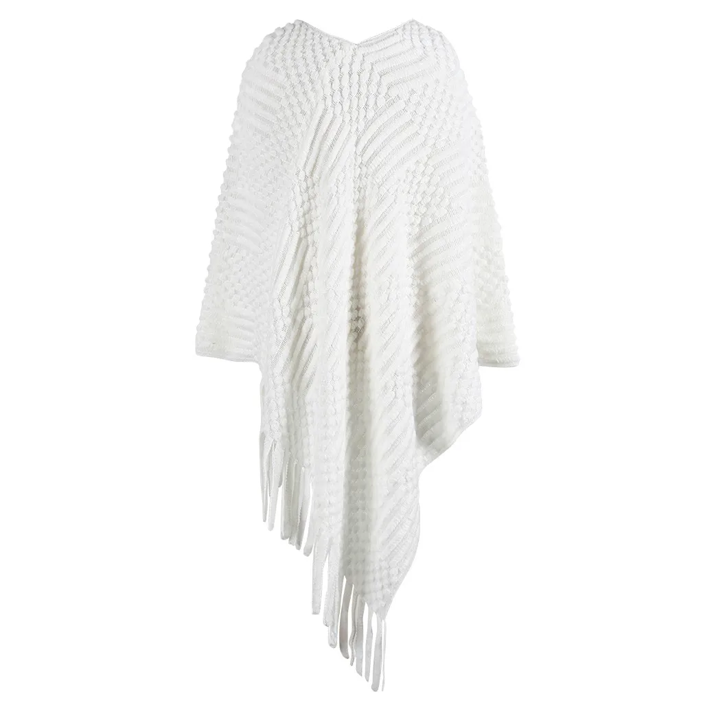 Для женщин, v-образный вырез, однотонная с маленькими пушистыми помпончиками для кисточкой свитер, Свободный плащ вязаный кардиган с отложным воротником