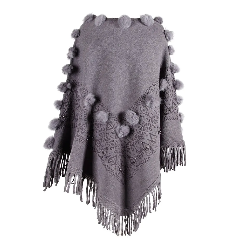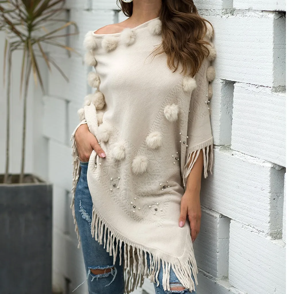 Женский однотонный плащ с бахромой и круглым вырезом