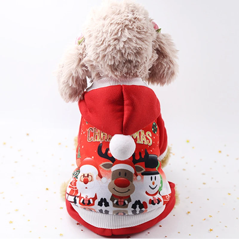 Пальто для домашних животных с четырьмя ножками и капюшоном с украшением в виде снеговика, лося, Санты и рождественской вышивки.