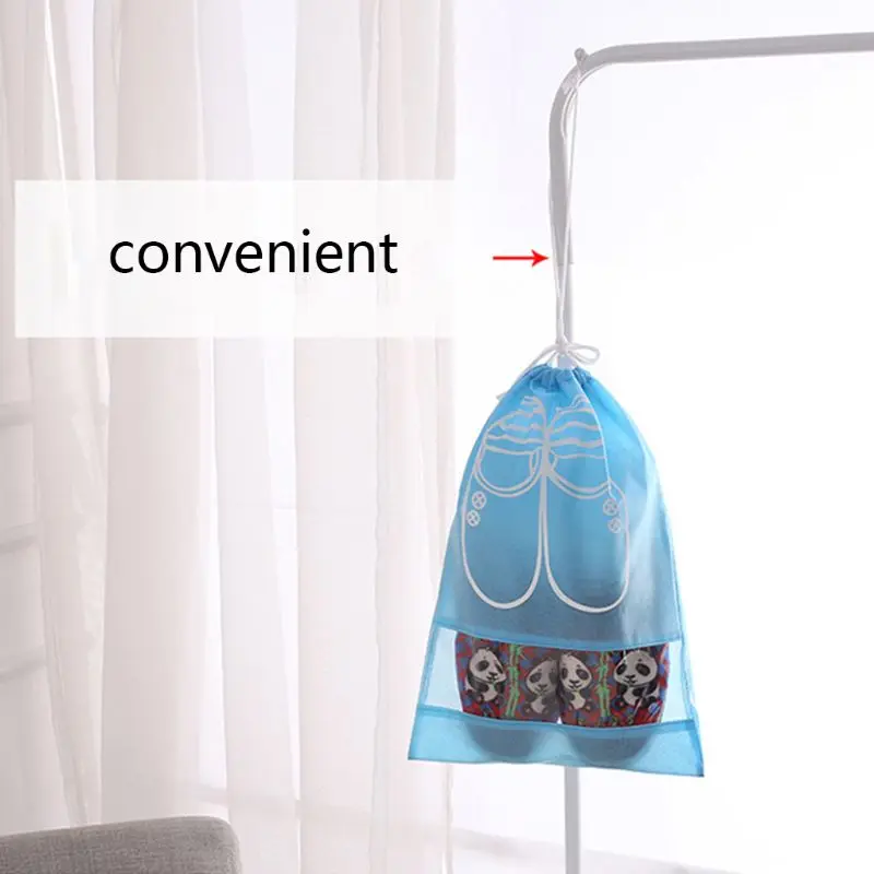 Изготовлен из высококачественной и толстой нетканой ткани, с завязками, прочный и многоразовый, хорошая работа по упаковке обуви для удобной переноски.